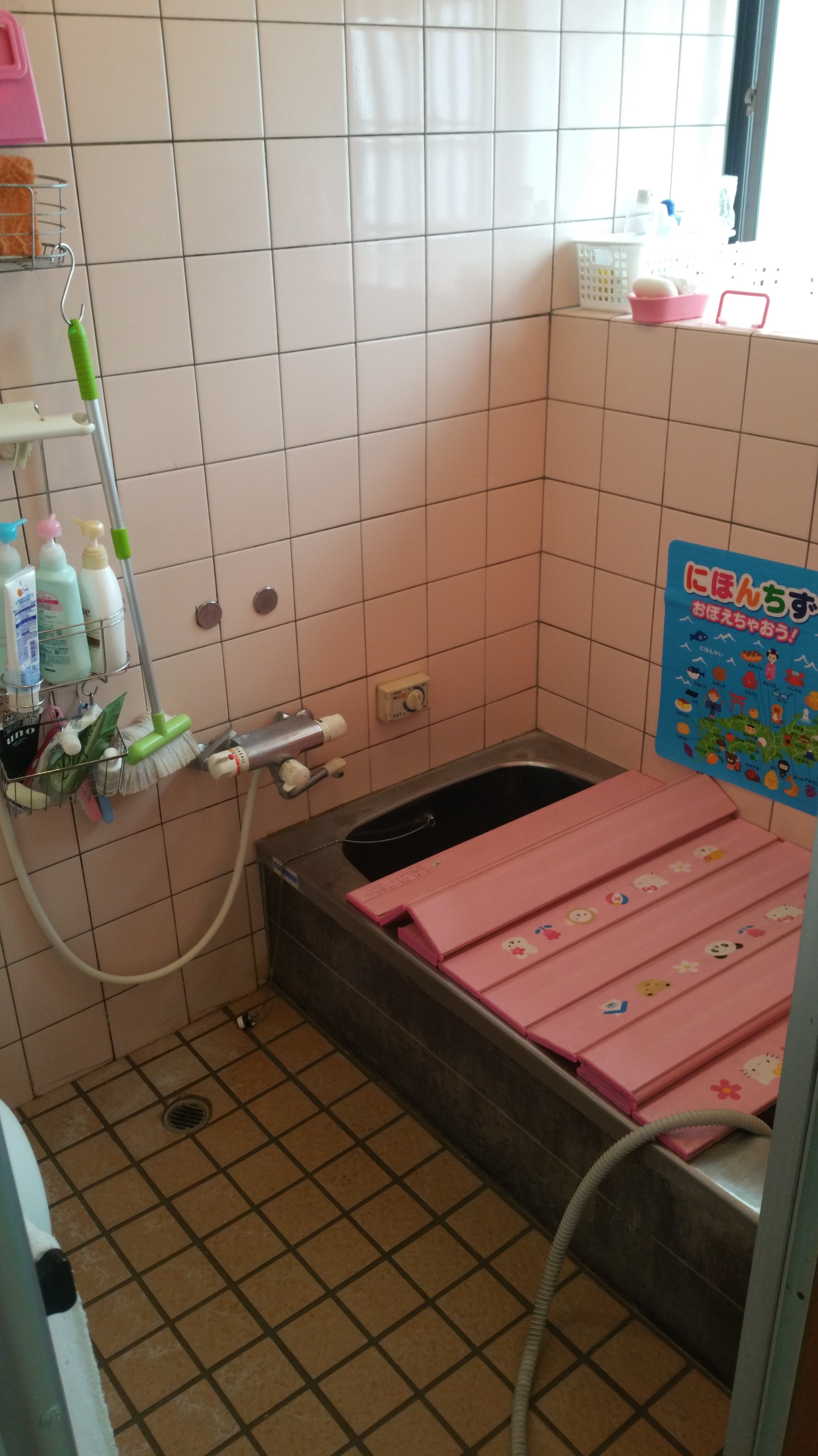 在来のタイル使いの浴室から、ユニットバスルームへとリフォームしました。優しい色合いの浴室になりました。