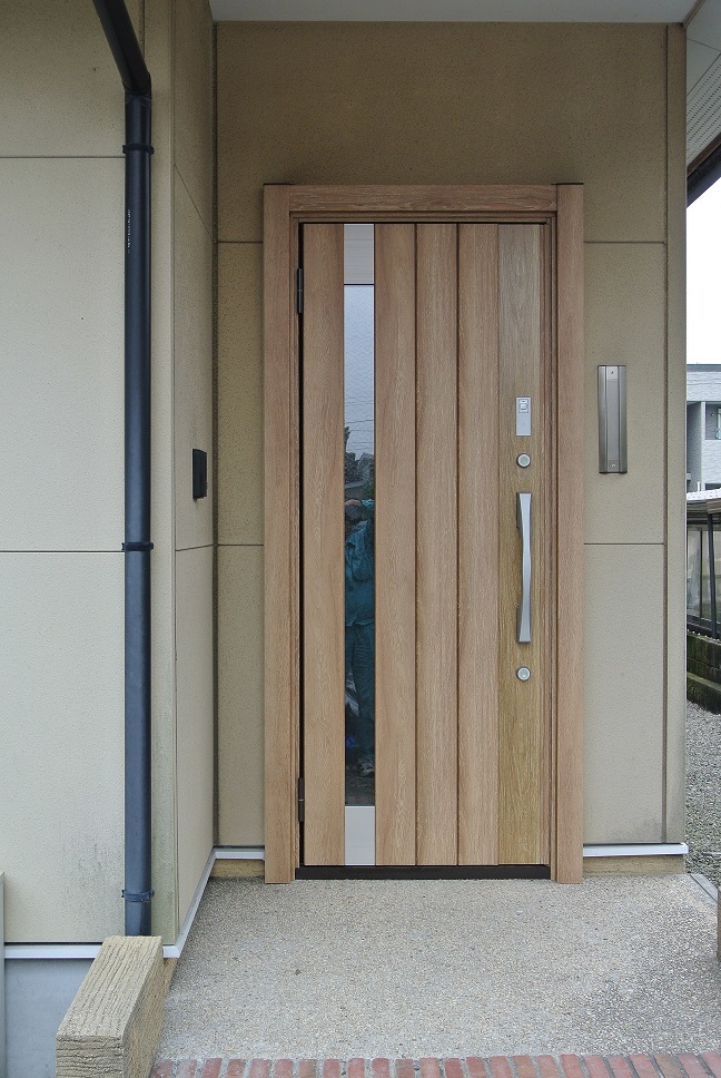 傷みの激しかった玄関を1日でリニューアル。以前より少し明るい色が外壁にもマッチしています。