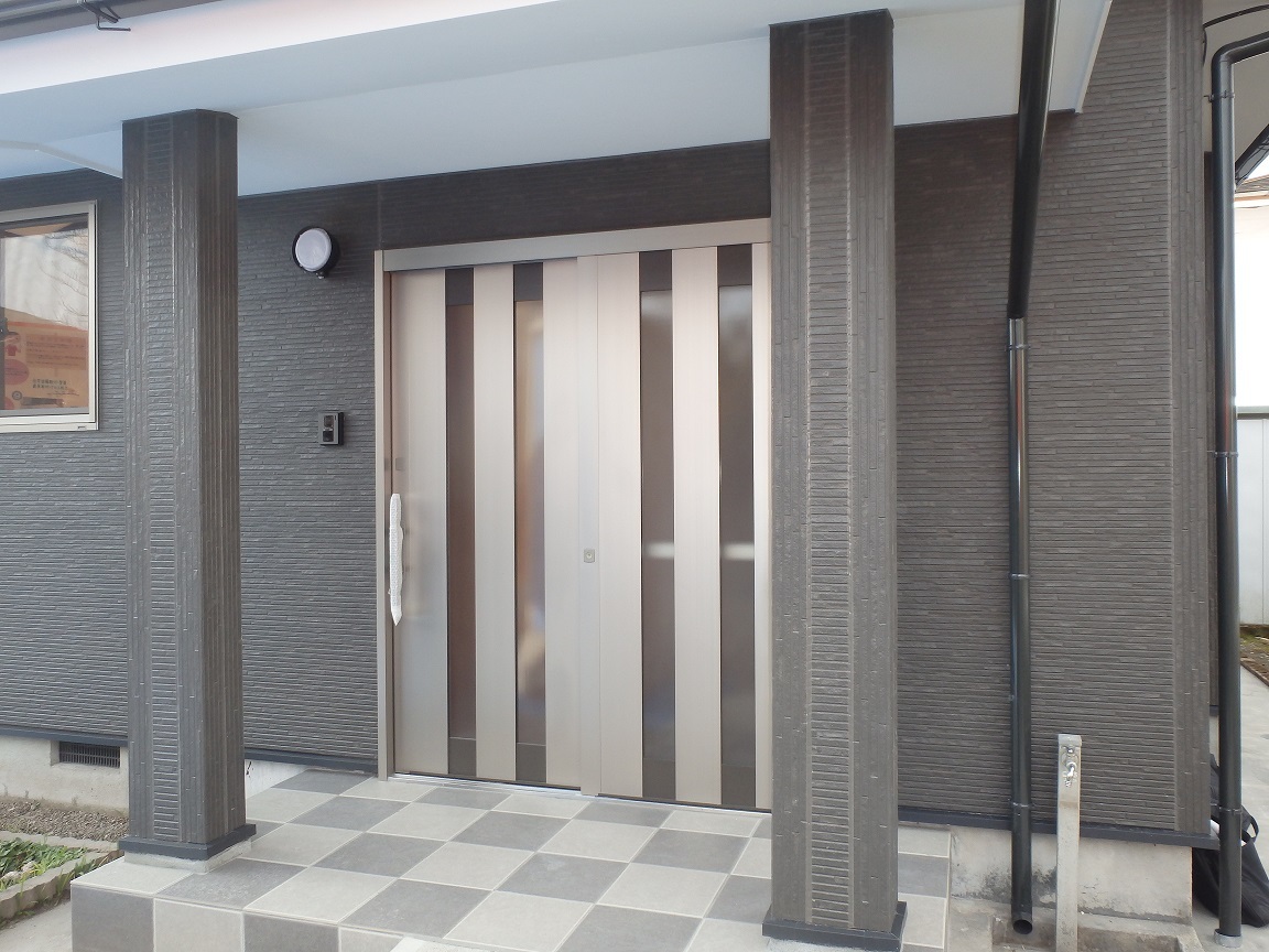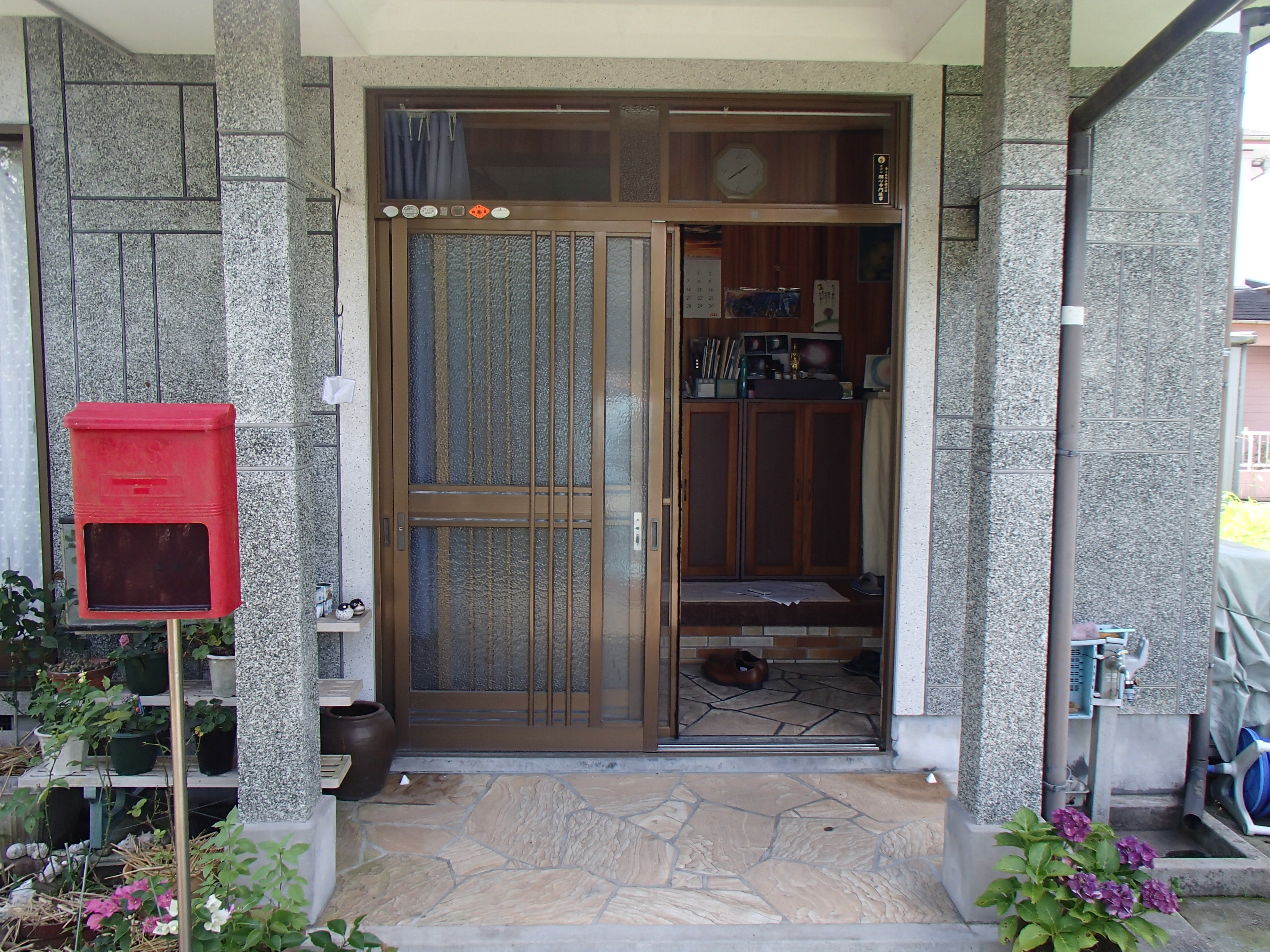 全面リフォームの玄関部分。市松模様にはったタイルがポイントのひとつです。