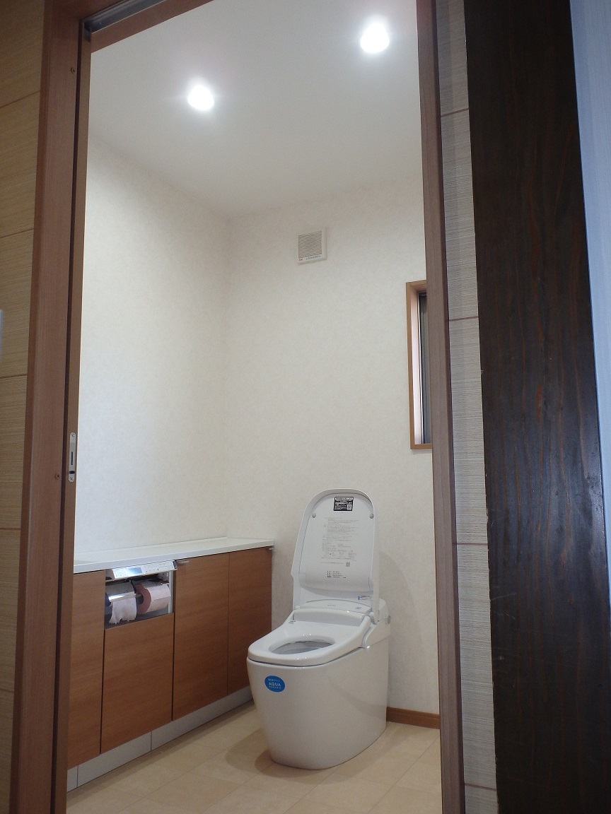 トイレはLIXIL サティスGタイプを採用。室内の広さも、0.5坪から1坪へと広げ、入口は引戸に変更しました。