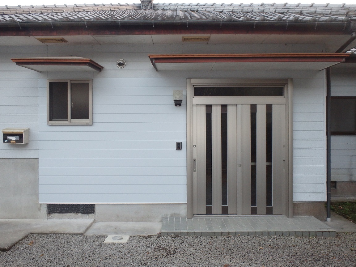 玄関はリシェントを採用。壁を壊さず工事ができるので、1日で工事は完了します。ペアガラス仕様で断熱性も◎