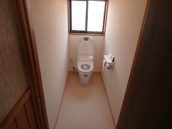 トイレのバリアフリーリフォーム。以前の和式トイレは段差がありました。年齢を重ねた方には少し使いづらい部分もあり、使いやすいタンクレストイレにリフォームしました。