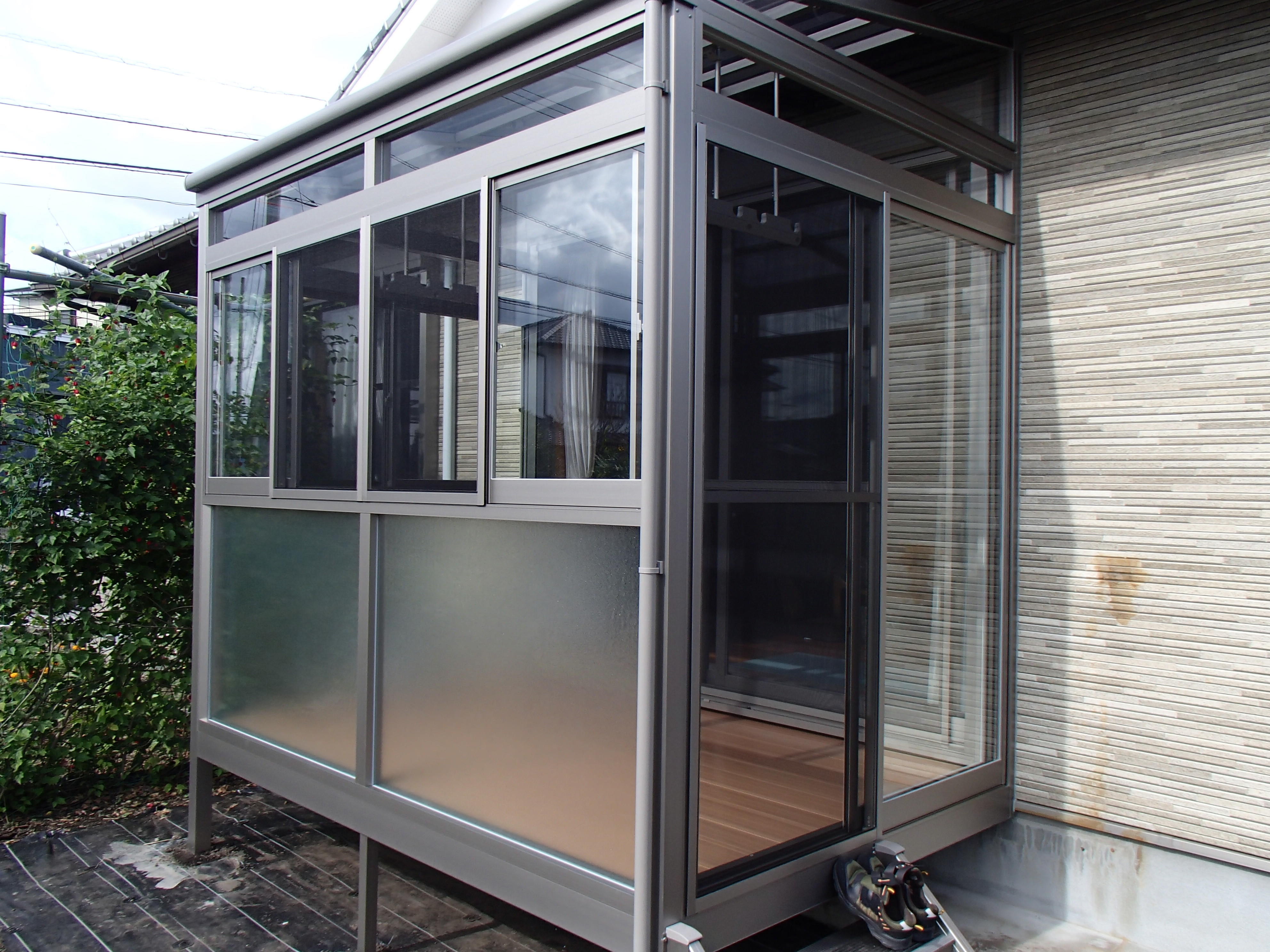 年数と共に、傷んで来るウッドデッキはメンテナンスが大変です。費用も掛かります。サンルームは、天候に悩む心配はありません。窓の開閉が出来るので、便利です。冬はぽかぽか暖かい快適な空間になりますし、夏の日の夕方、ビール片手に、風を感じながら涼むような贅沢な時間も送れます。洗濯物を干すだけの方もいらっしゃれば、カーテンを設置されて、楽しむ空間として過ごされている方もいらっしゃいます。お客様からは、たくさんの喜びのお声を頂いています。是非、ご検討を・・・。