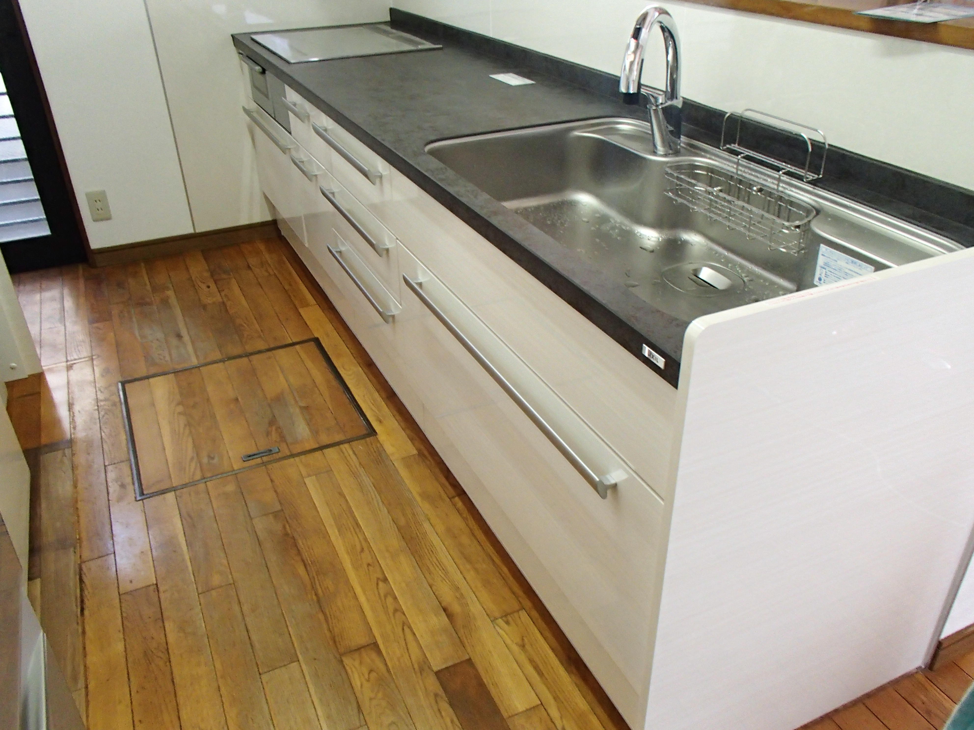 奥様が長年使用されてきたキッチン。今回は、洗浄機の故障が機会となり入替を検討されました。「楽パット収納」は収納力もバッチリ、開閉にも工夫がされており軽い力で開けられるようになっています。ガスコンロからIHに変更されたことでスッキリしてお掃除も楽になりました。