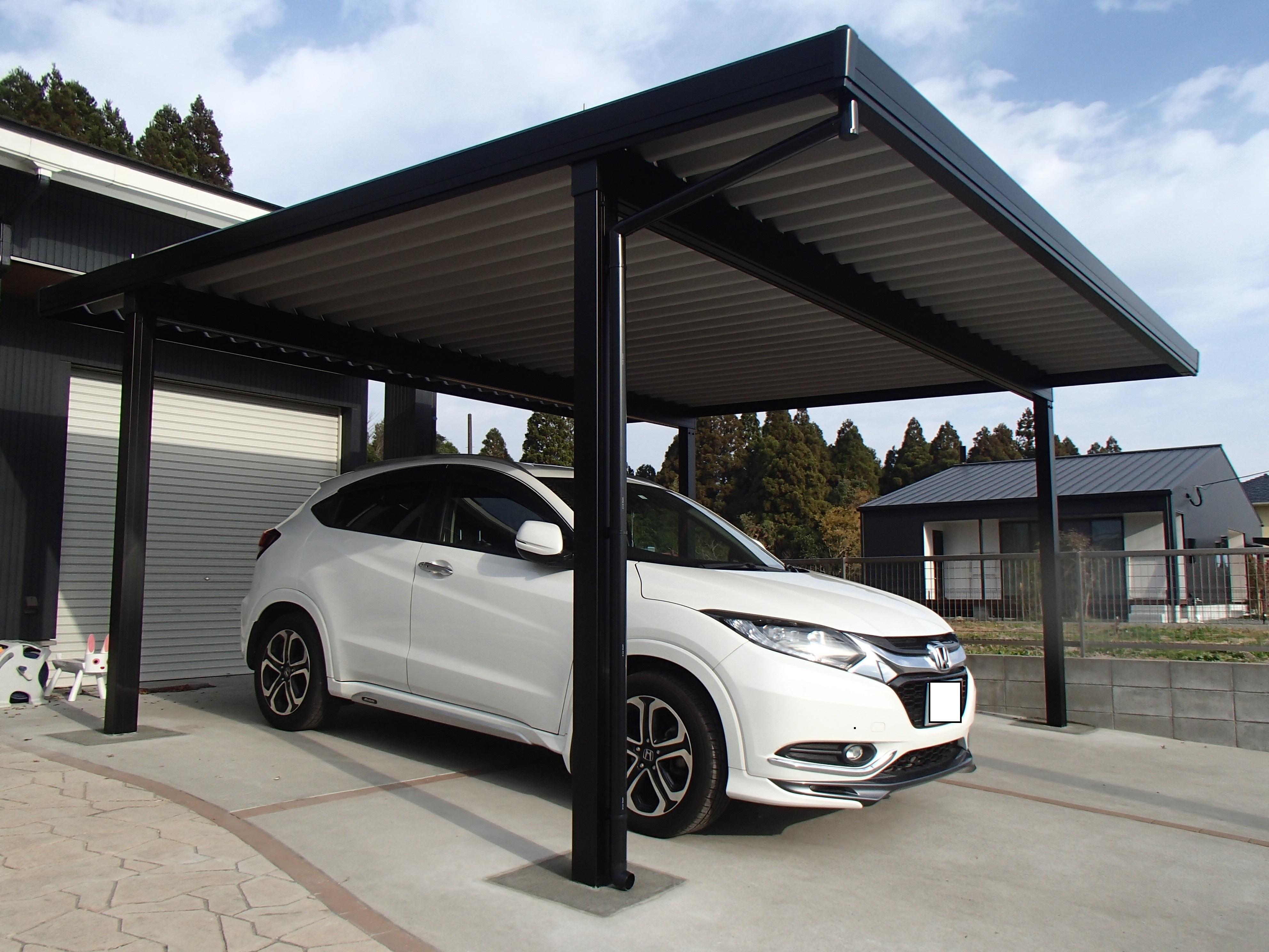 モダンなお家にも、しっくりくる頑丈なカーポート設置。