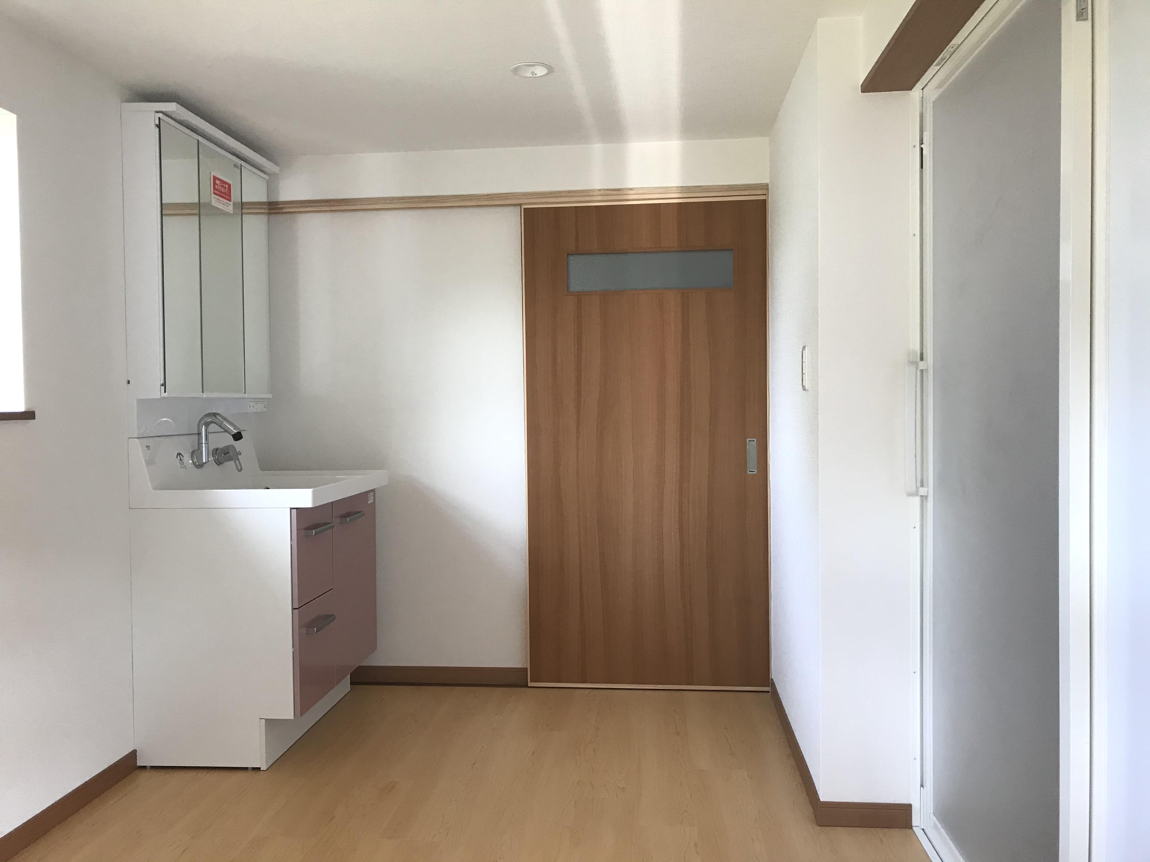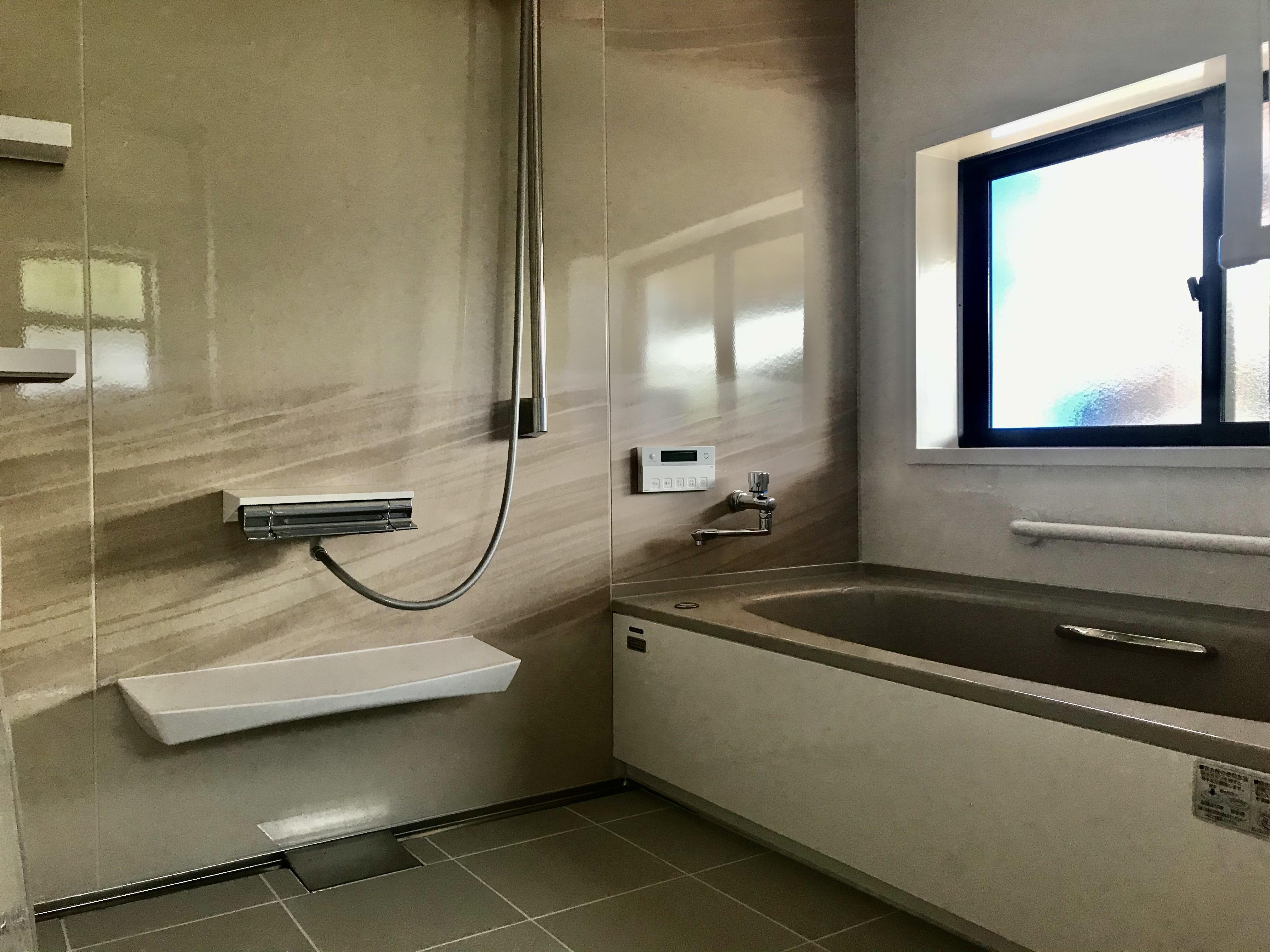 水回りのローテーションをしました。お風呂だったところを改築して、広々した脱衣室に。土間だったところにユニットバスを入れ込みました。外壁もモダンに仕上げ、素敵になりました。