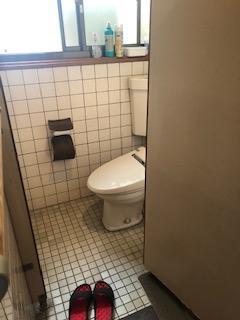 既存の男子用トイレを撤去と仕切りのドアを撤去して、広いスペースを確保しました。