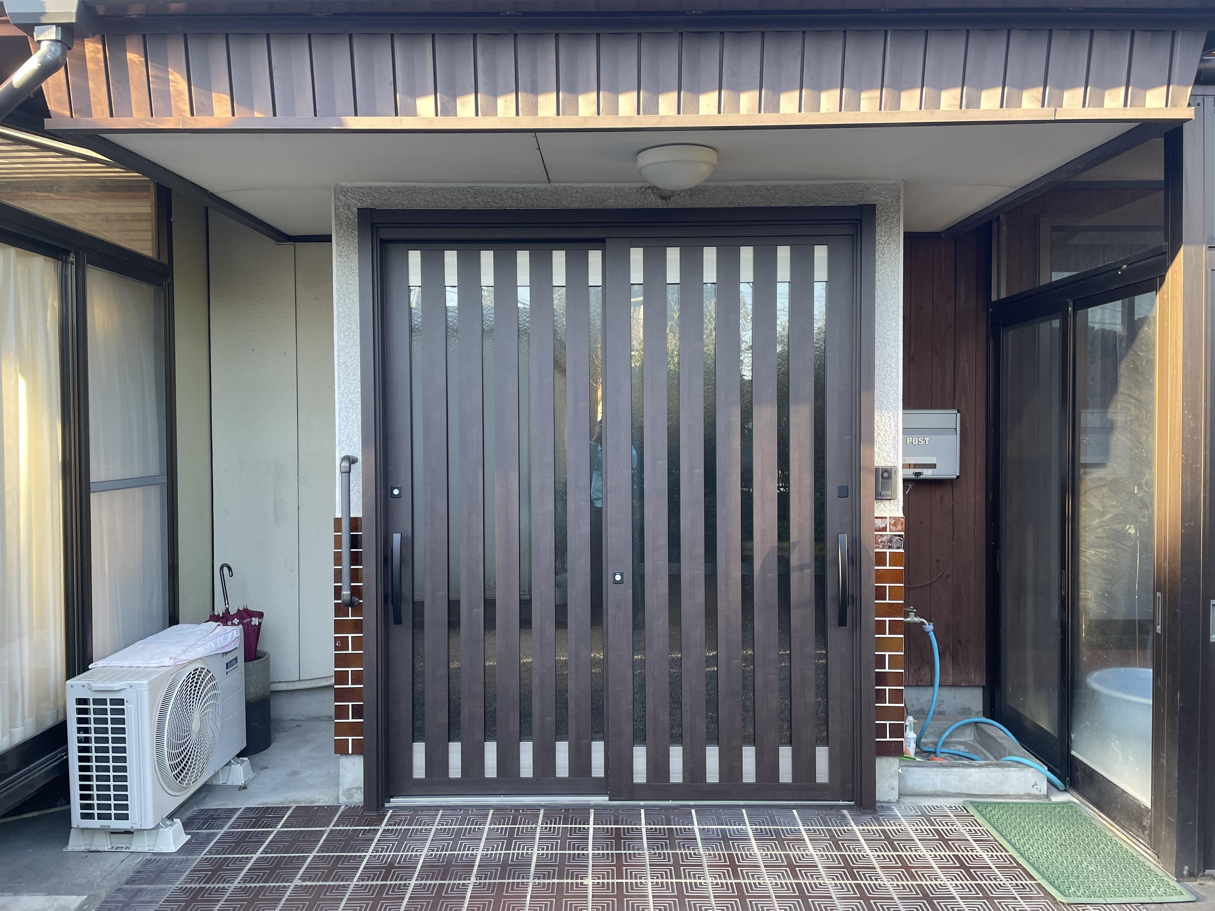 壁を崩さず取付が出来る『カバー工法』で、工事はたったの1日で終わります。今回、欄間無しの大きな引き戸に入れ替えました。施工前は、ガラスが透けて中の様子がうかがえてましたが、施工後は、全く見えず、いい感じです。扉が変わると、お家の雰囲気もがりと変わりますね。LIXILのリシェント玄関ドアから、幸せがたくさん入ってきますように!!