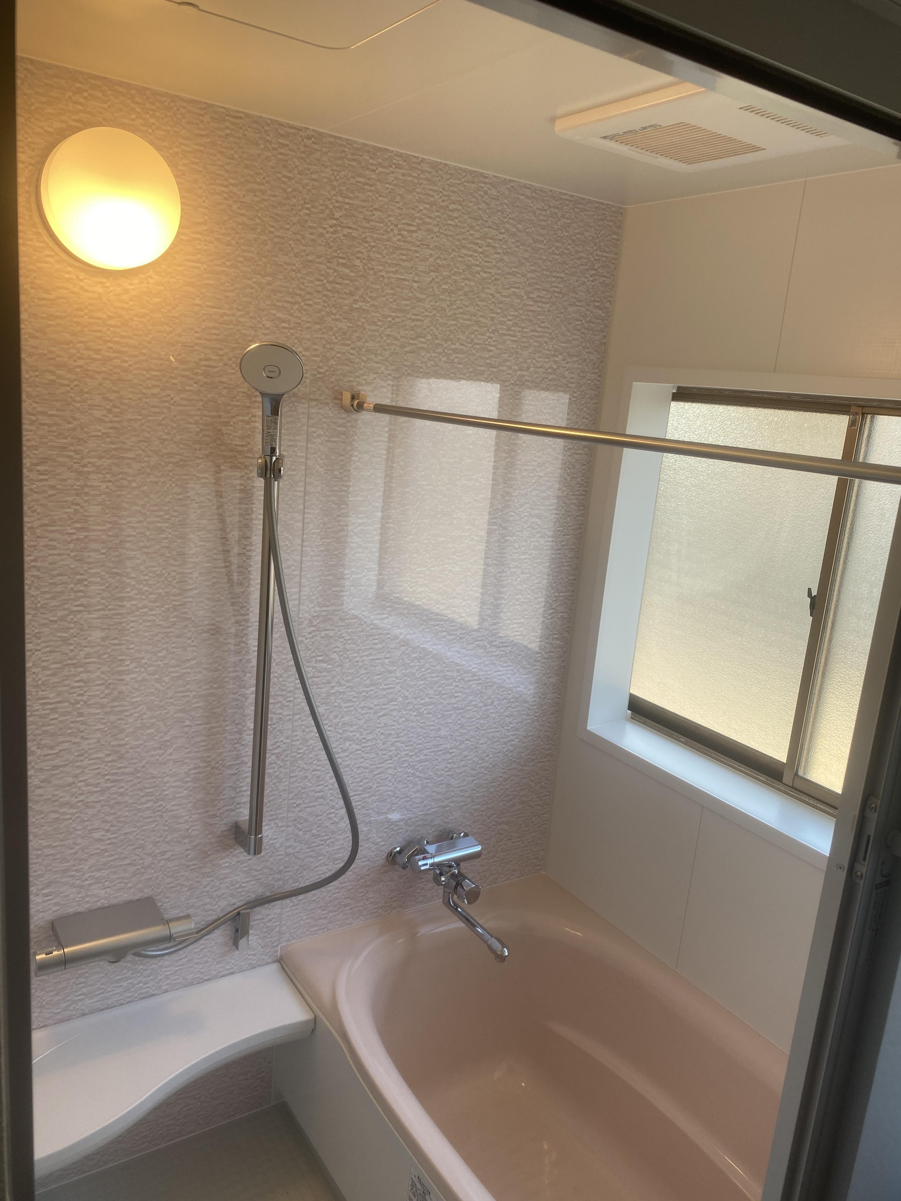 ユニットバスへのリフォーム希望でしたが、浴室の幅が狭かったので脱衣室も一緒にリフォームを行い、浴室のスペースを広げました。写真を見ても感じられるように、とても暖かそうな浴室に生まれ変わりました。お施主様には、一日の疲れを癒し、バスタイムを楽しんで頂きたいです。今回の様に、サイズ感や種類等に悩まれていたら、お気軽にご相談ください。永倉建設がお客様のリフォームの夢実現に一緒に取り組みたいと思います!!