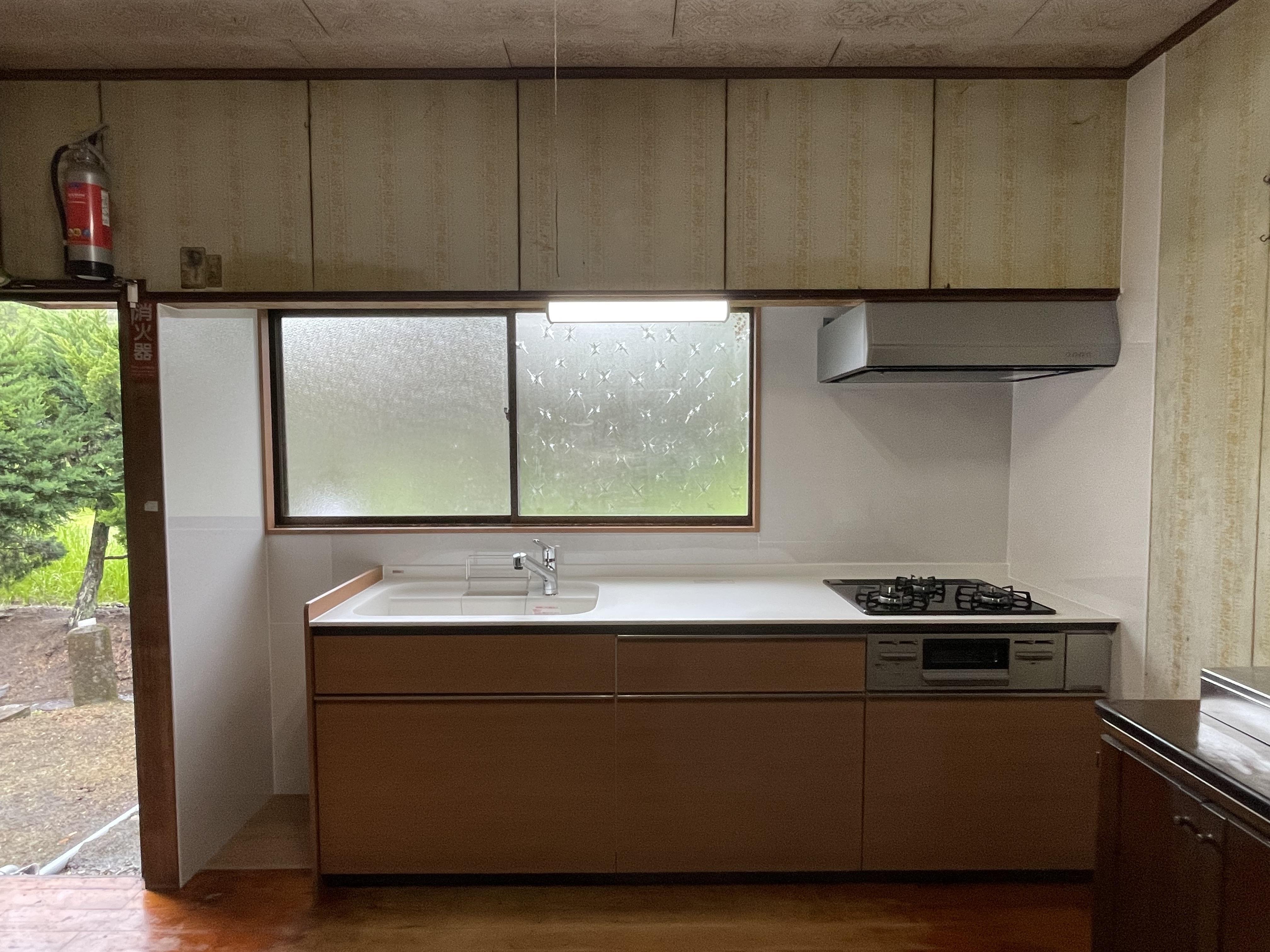 キッチンパネルも一緒に張り替えたことで、明るい印象になりました。シンクも広くなったので作業しやすくなりました。3口コンロは、左右どちらのバーナーも、強火が使用できるので、調理がスムーズです。コンロのトップはガラストップ仕様なので、ササっと拭けてお手入れカンタンです!!