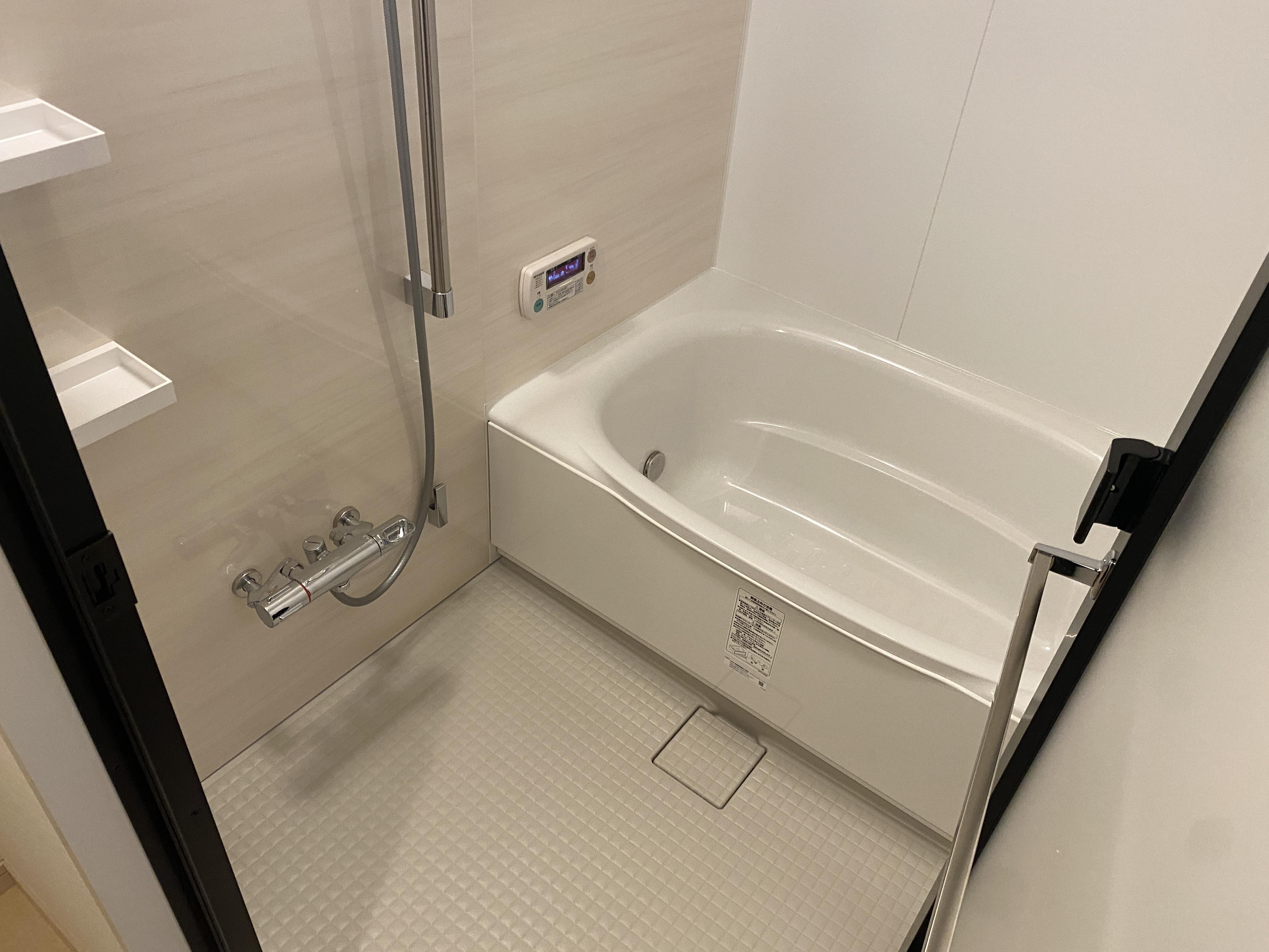 マンションのユニットバスのリフォームです。浴室乾燥機もセットで施工しました。浴槽も広くゆったりと入浴できるサイズ感が人気です。