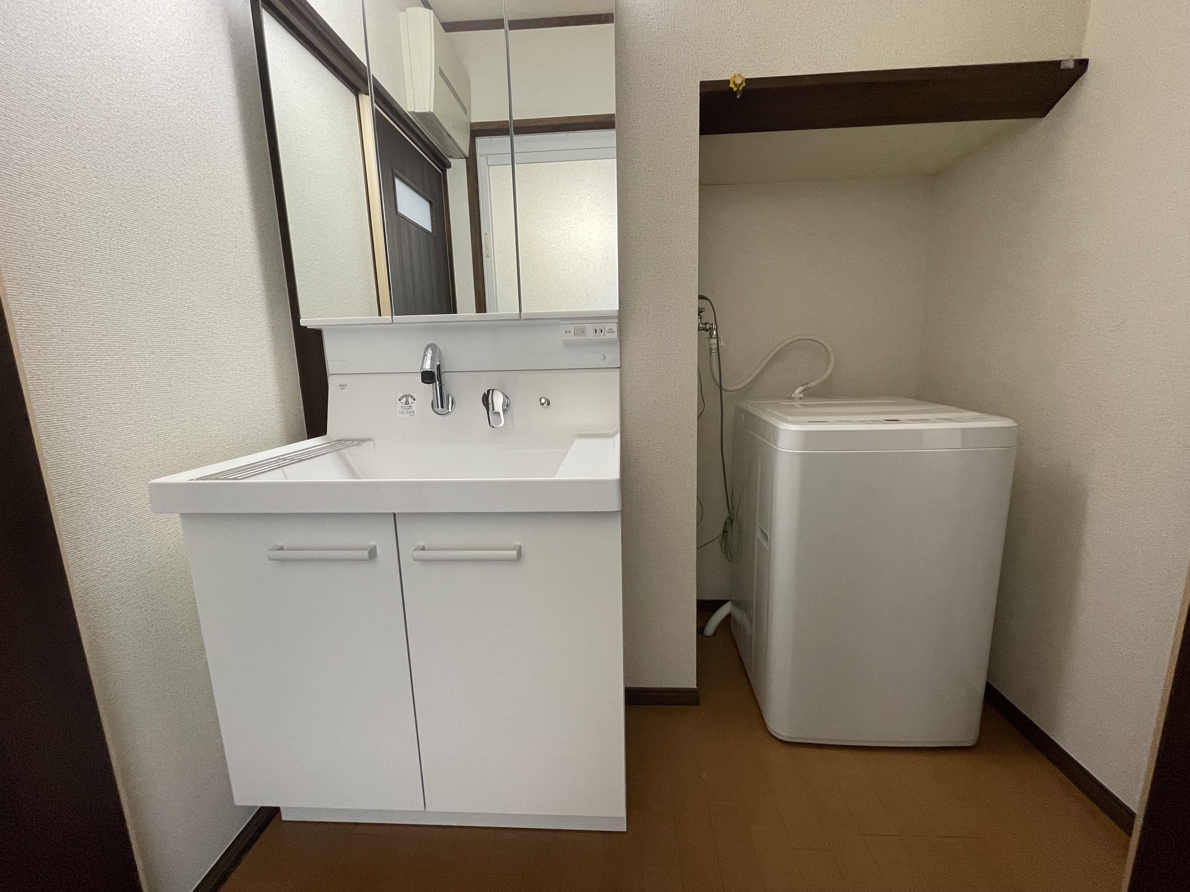 ピアラへの洗面化粧台のリフォーム工事です。ピアラの特徴のひろびろしたボウルや、くるくる稼働できる水栓は、2人使いの時や深いバケツ等の水汲みの時もとても使いやすいです。収納力も抜群なので、お化粧品等の小物やドライヤーなどもスッキリ収納して整頓が出来いつでもキレイ!! ※クロスも張替えて明るい脱衣室になりました(#^^#)