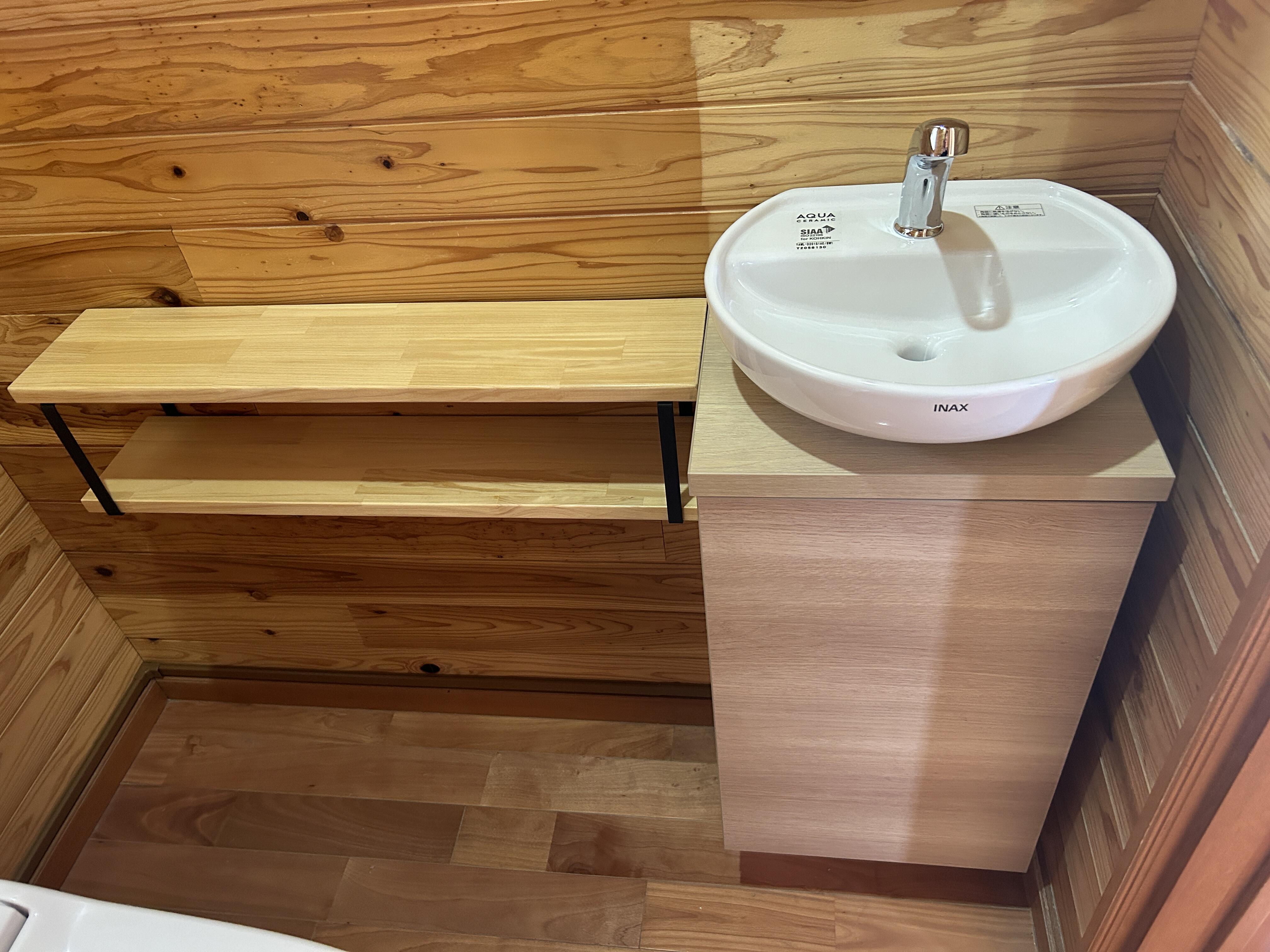 奥様より、お掃除が大変というご相談を受けましたのでサティスXをご提案させていただきました。 「便器が自分でお掃除」という所に魅力を感じていただけて良かったです。 造作棚も喜んでいただけて私も嬉しい限りです。 この度は工事発注誠にありがとうございました