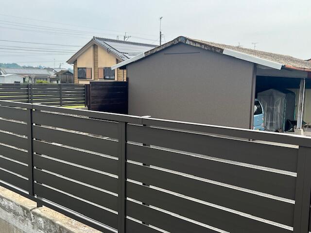 納屋の解体をするにあたり、庭が丸見えになってしまう為目隠しフェンスを設置。また車庫は壁が無い状態になるので、補強を兼ねて壁を張りました。