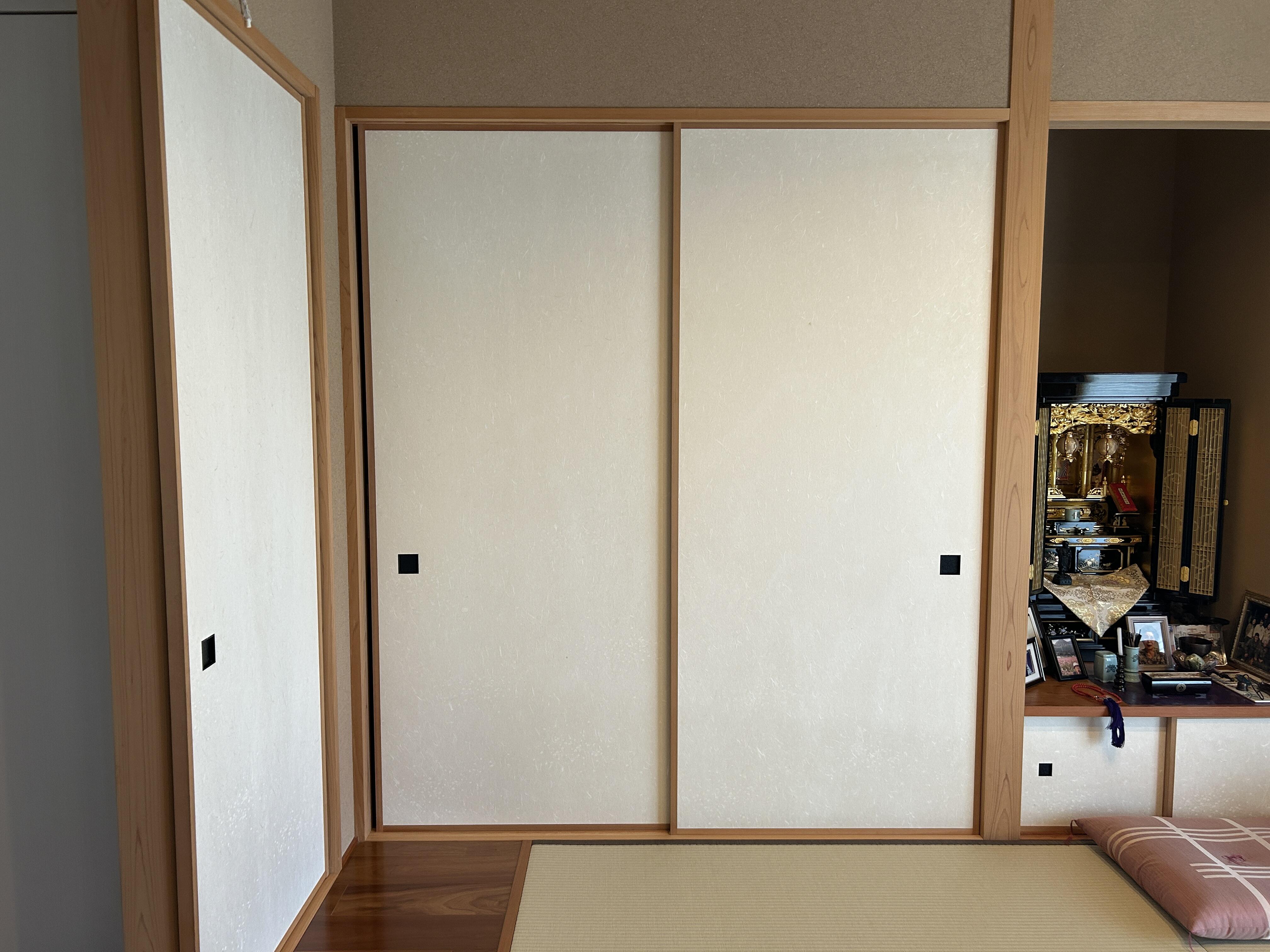 布団の出し入れをする時に襖に当たってしまい、凄く大変だったので作り替えてもらいました。襖の柄が上品な柄で気に入りました。仏壇の隣が華やかになり大満足です。作り替えをして本当に良かったです。ありがとうございました。