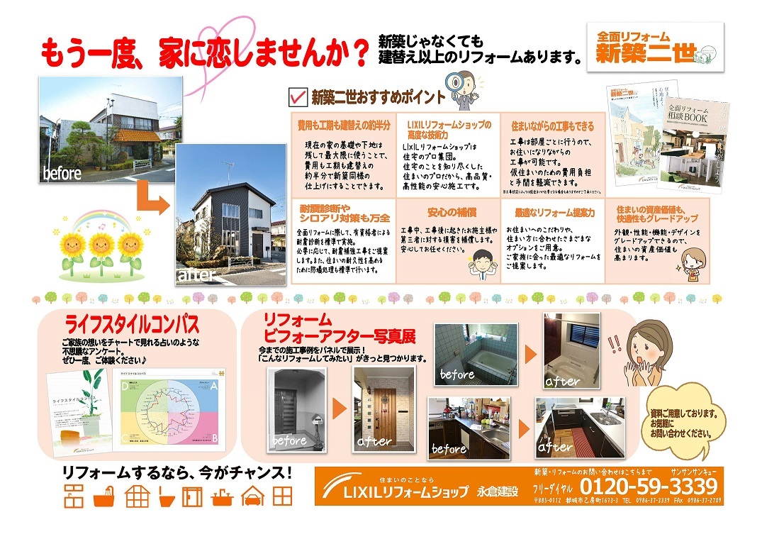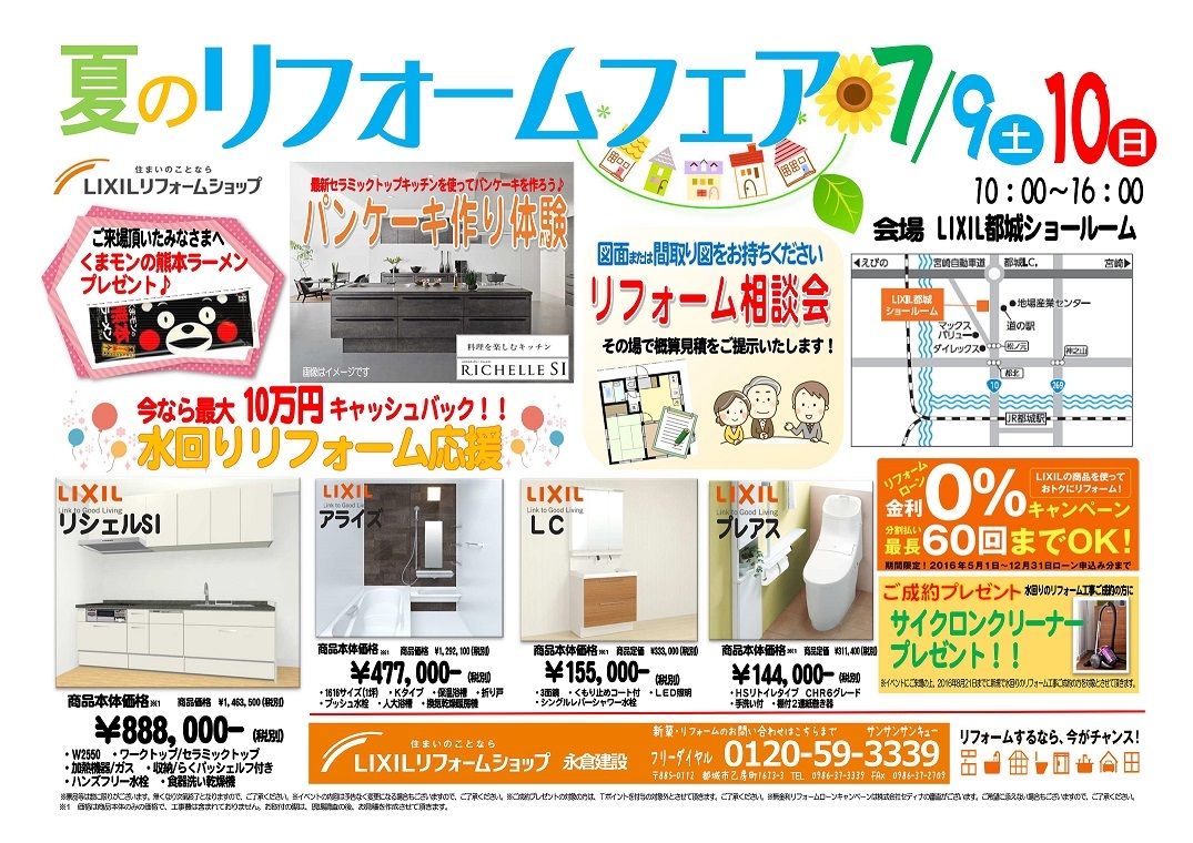 7月9日(土)、10日(日)の夏のリフォームフェアのイベントチラシが完成しました(*^▽^*)