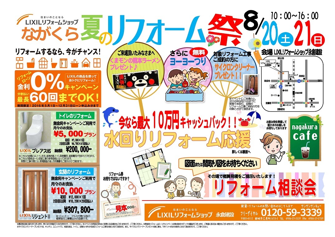 LIXILリフォームショップ永倉建設では8/20,21の2日間