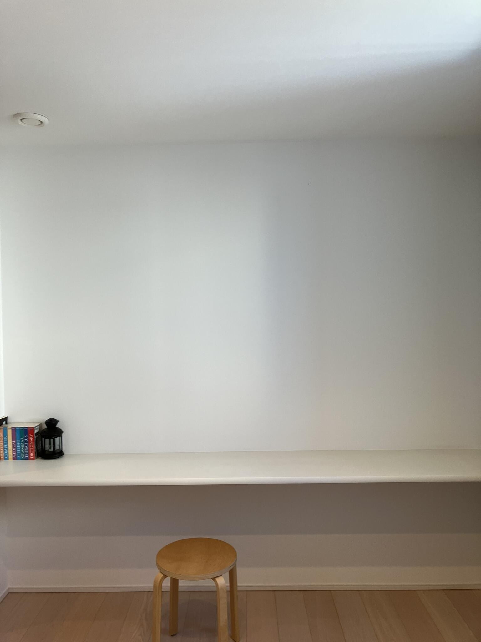 当日はLIXILの方にお越しいただき、設置場所を数か所ご相談。採寸の結果、2階寝室の壁面に貼ることとなり、いよいよ作業開始です。
