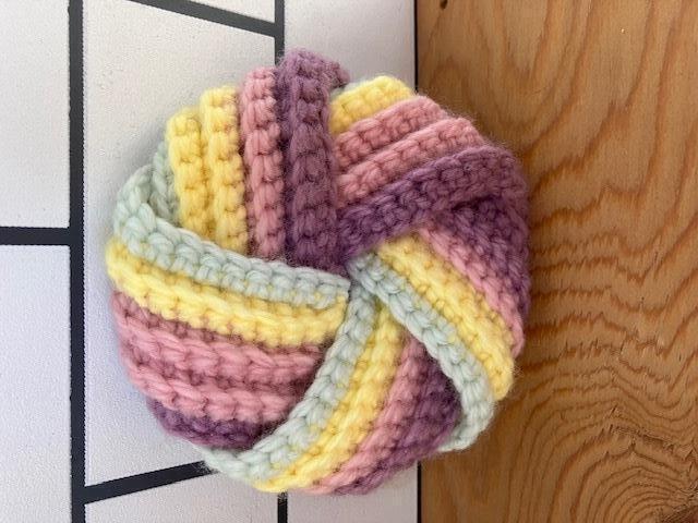 毛糸を使って自分だけのアクリルたわしを作ります。