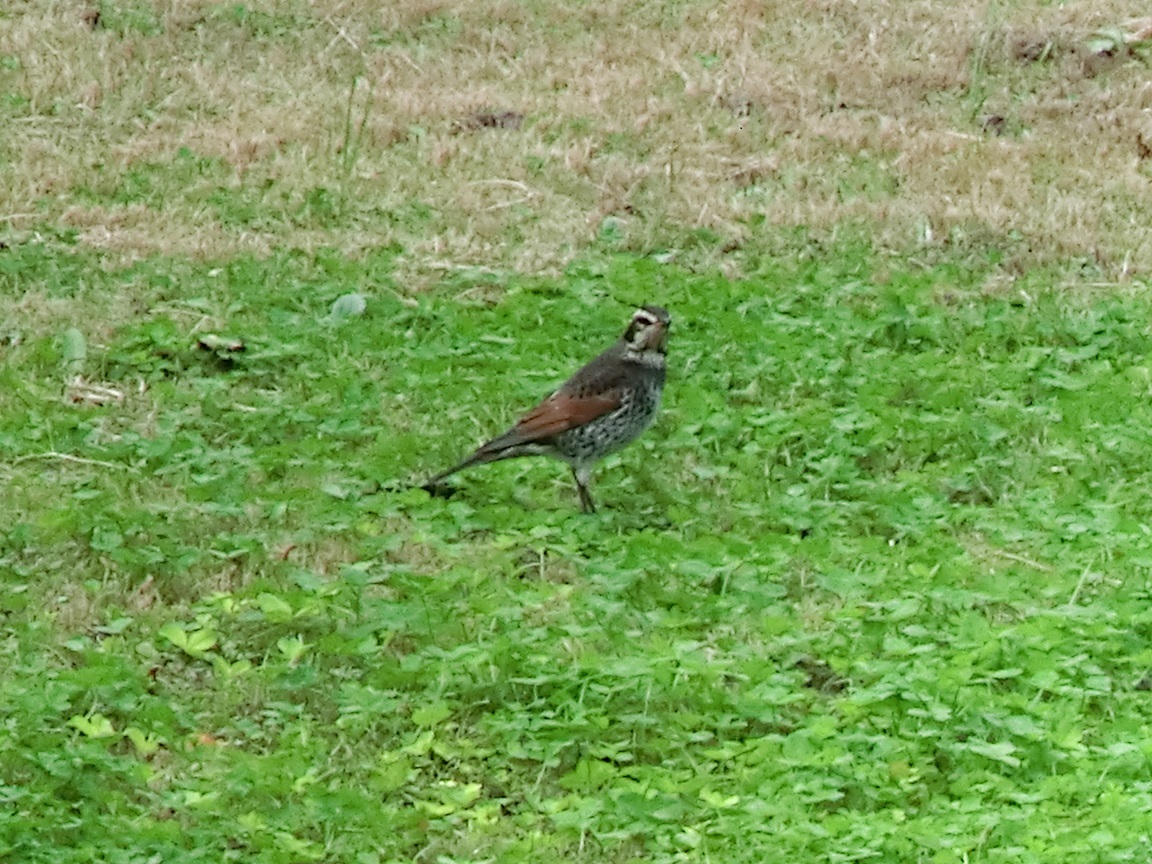 庭先で、枯葉の下の虫やミミズを、さがしていました。