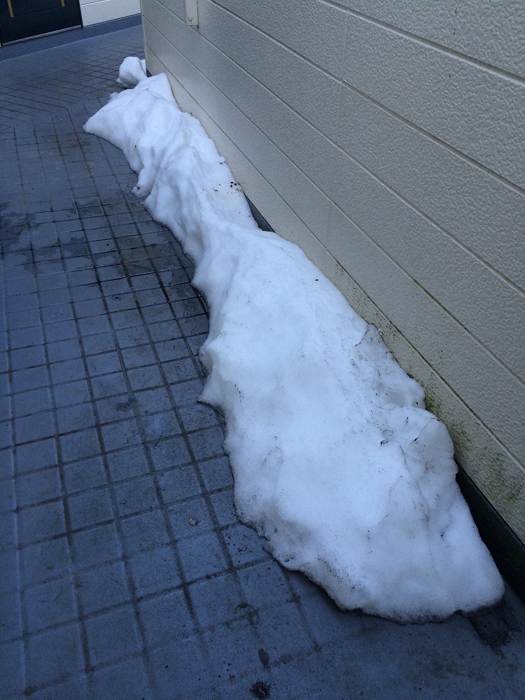 降雪から10日間経った今でも日陰では、雪が残っています。あれから寒い日が続いた事を物語っています。(by B)