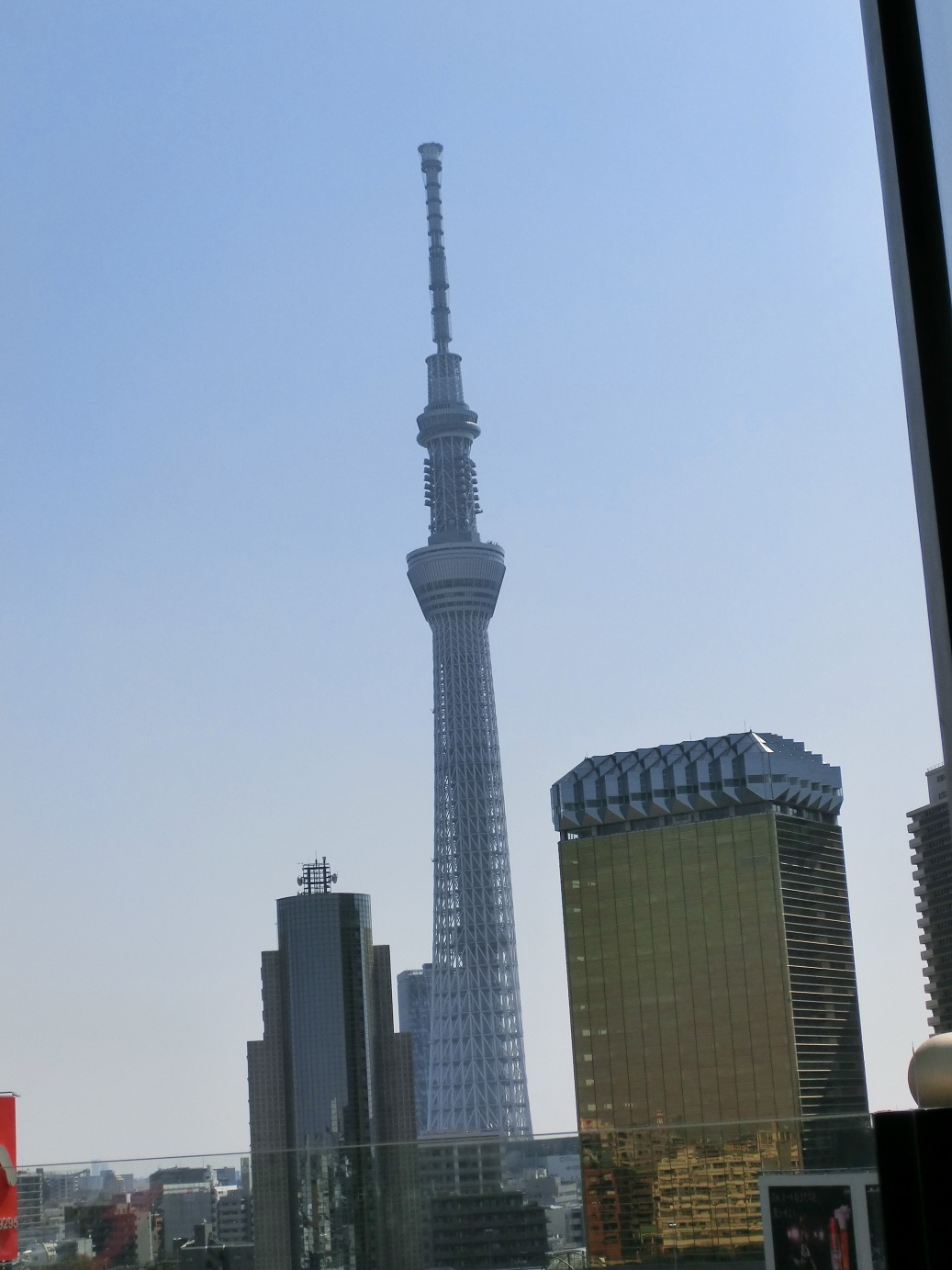 東武スカイツリーライン「浅草」より、スカイツリーを見る。