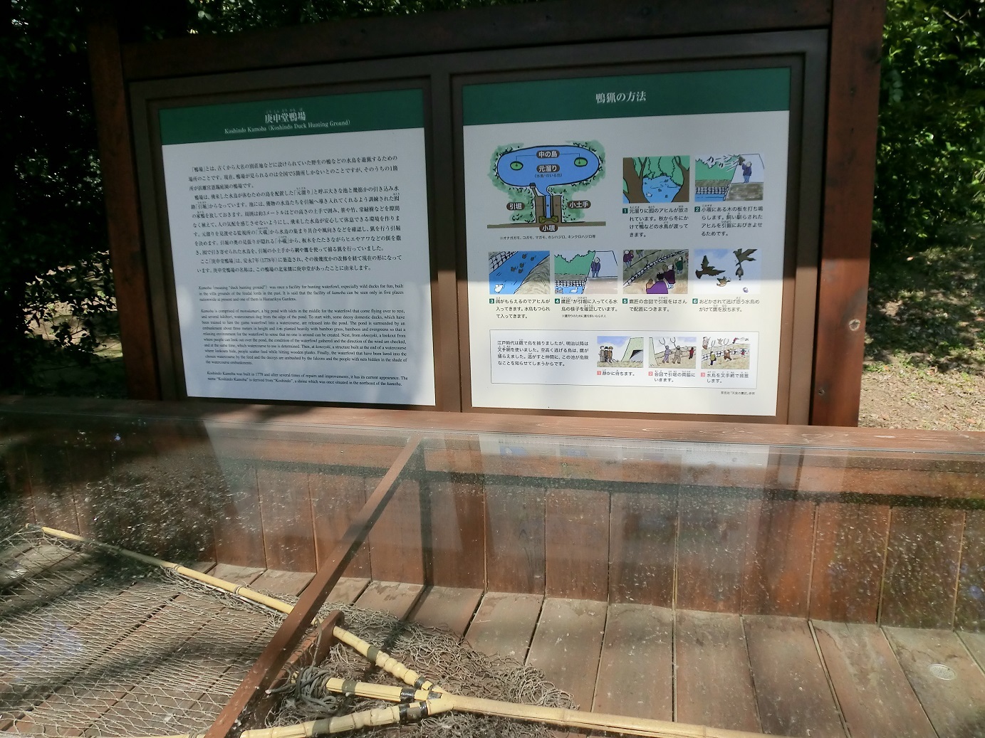 庚申堂鴨場、江戸時代~明治時代に掛けて「鴨漁」のやり方の説明が有ります。