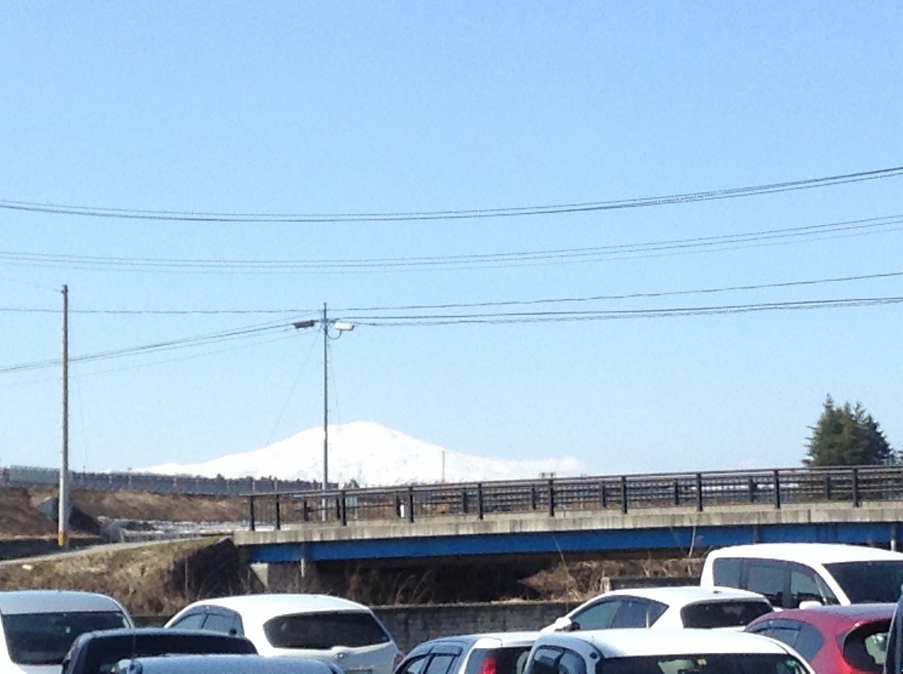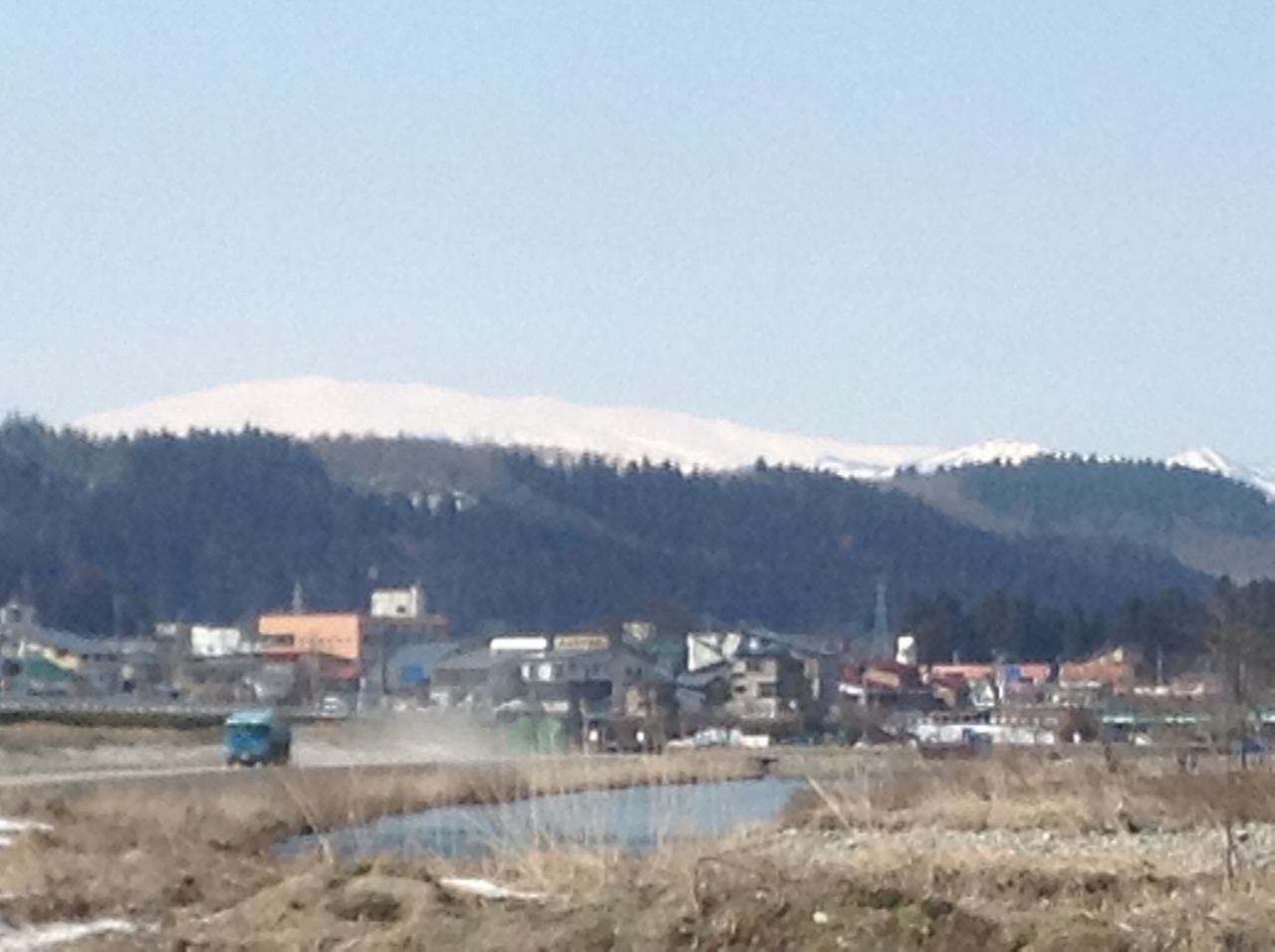 関東は桜が満開の時期。新庄市においては、遠くに白い山が見えます。