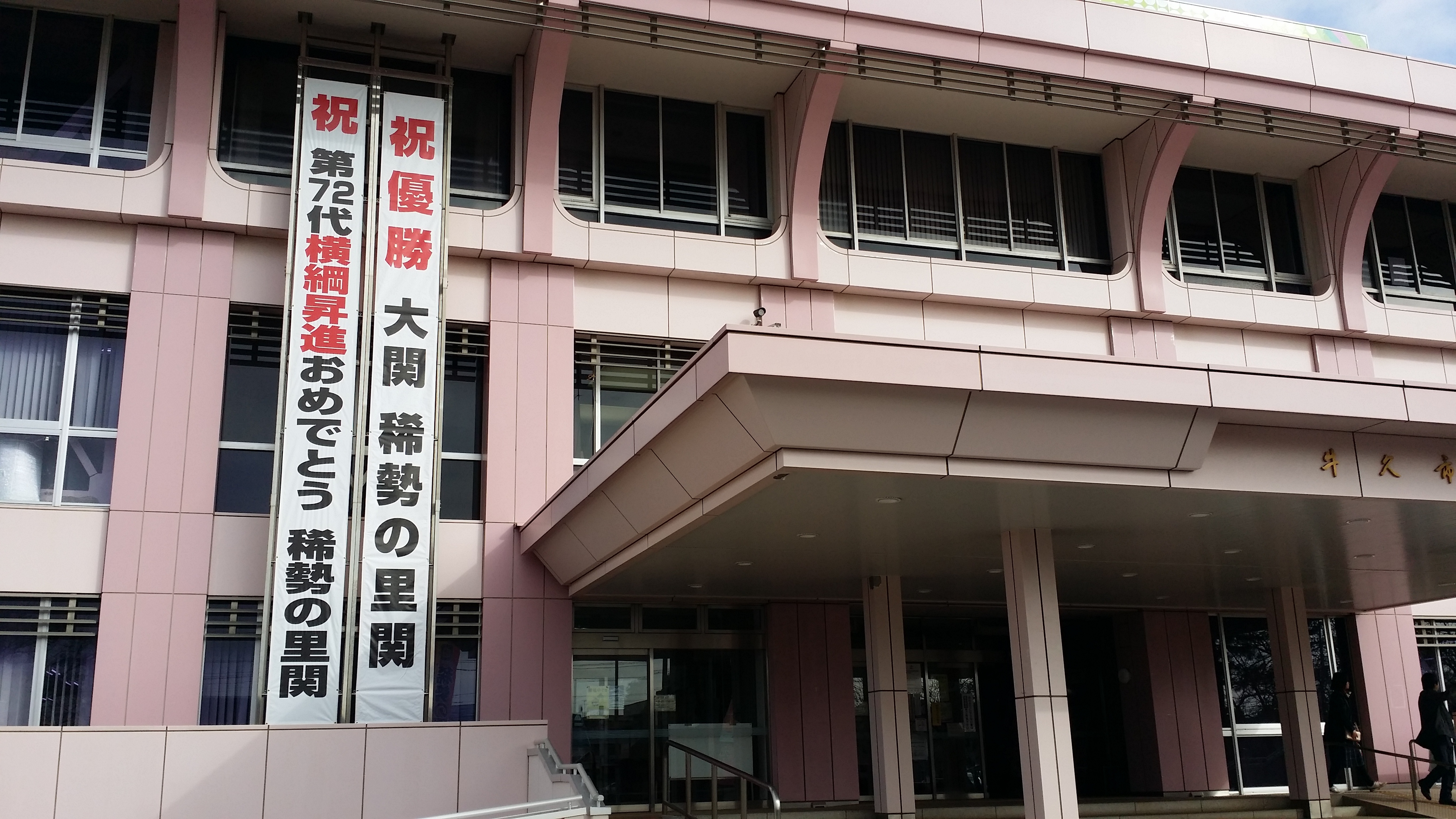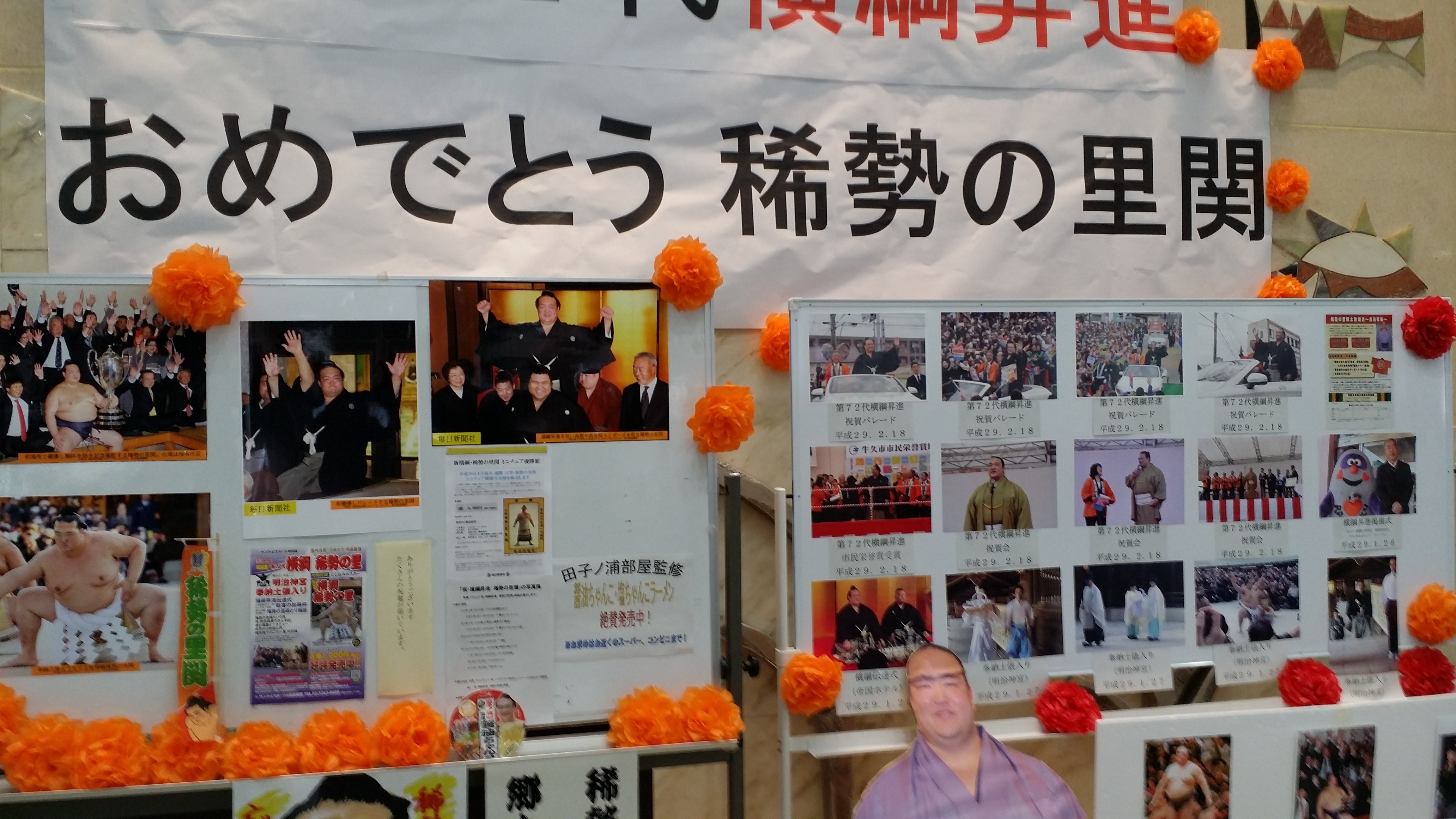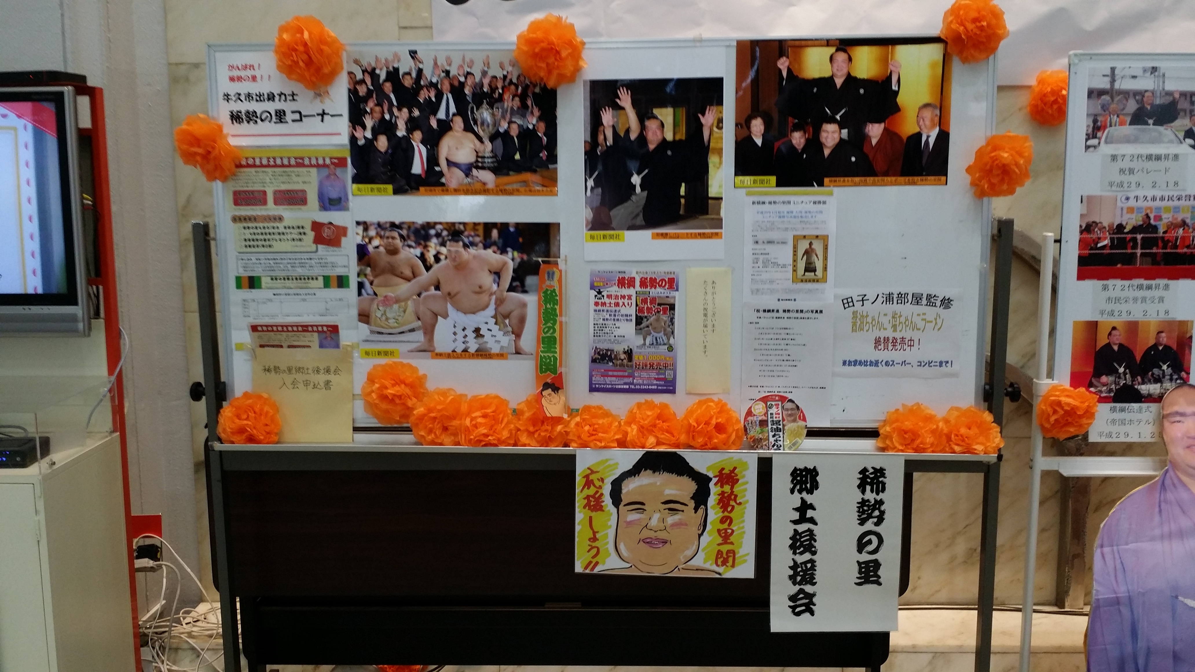 そして、外だけでなく、市役所の中にも「稀勢の里」に関するものが所狭しと設置されていました。