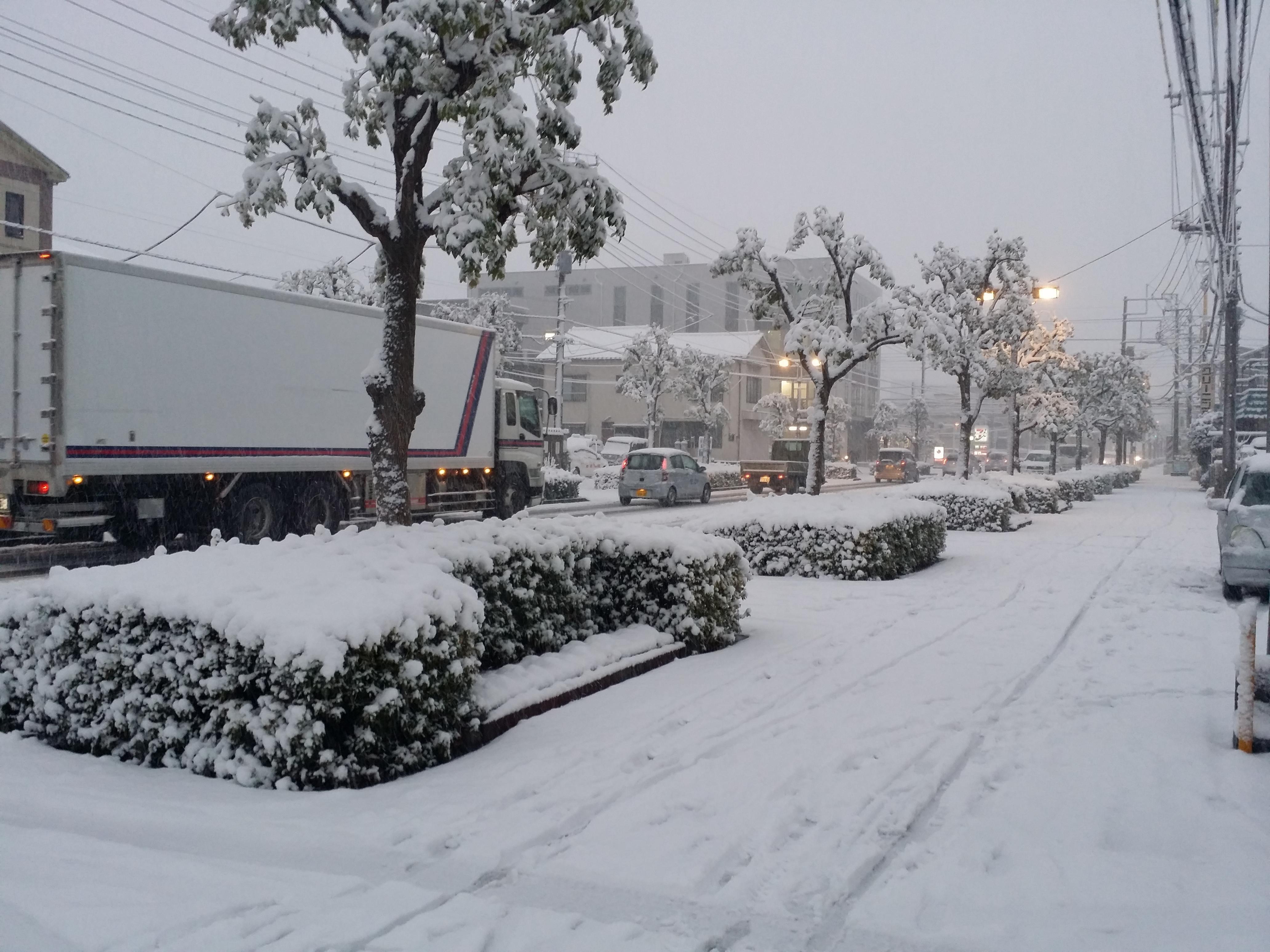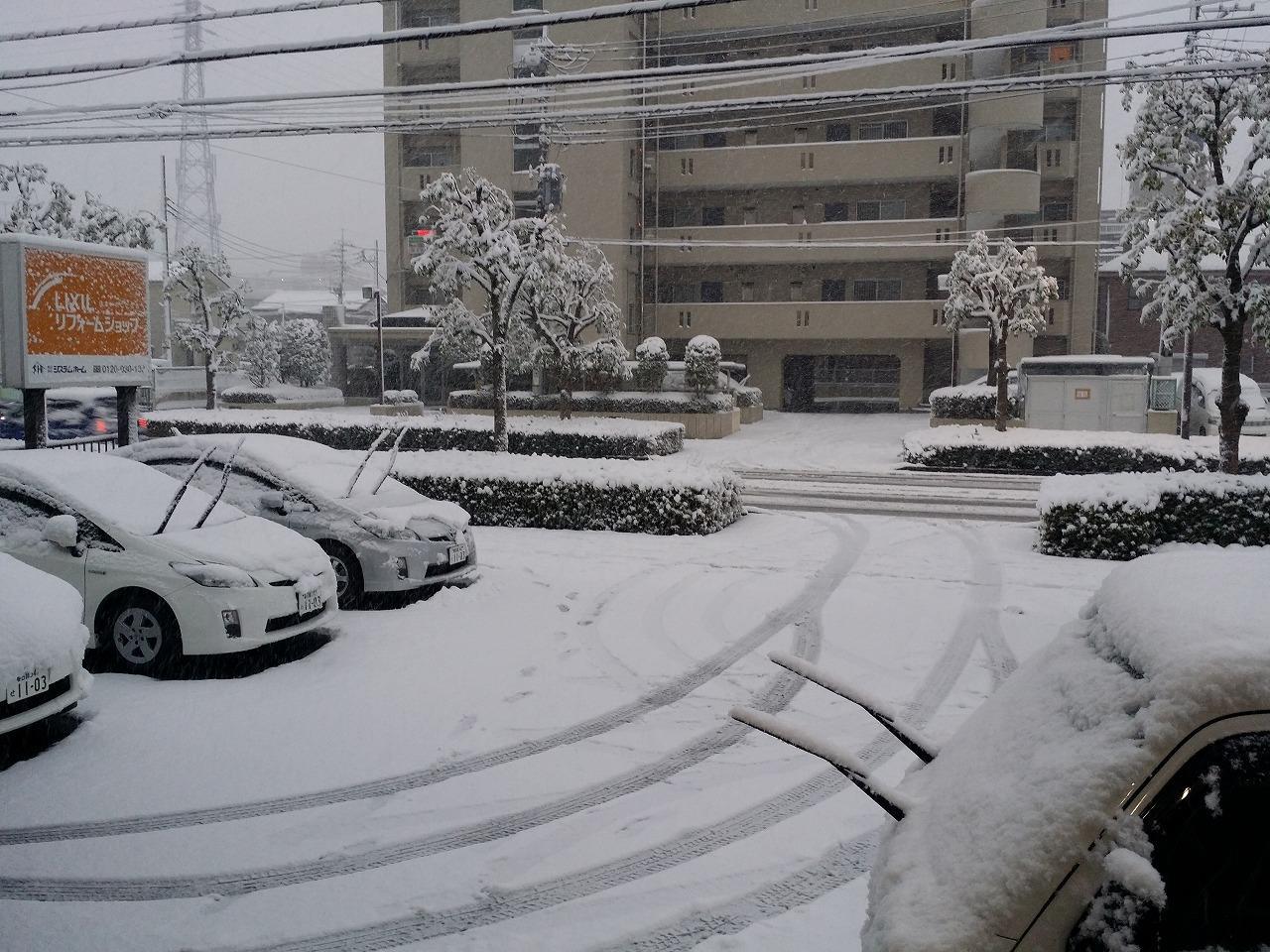 写真のように 弊社周辺もあっという間に積もってしまいました。