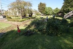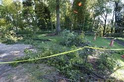 写真は公園の樹木が折れて散乱している様子です。