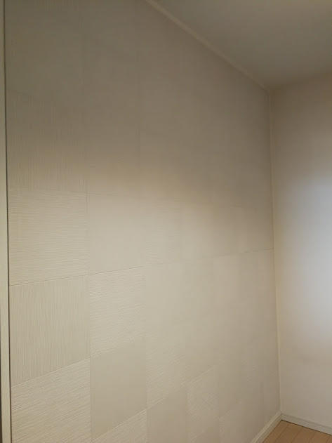 今回、お客様はこのパネルを1枚1枚、向きを交互に貼ることで、よりオシャレな壁模様にしました♪