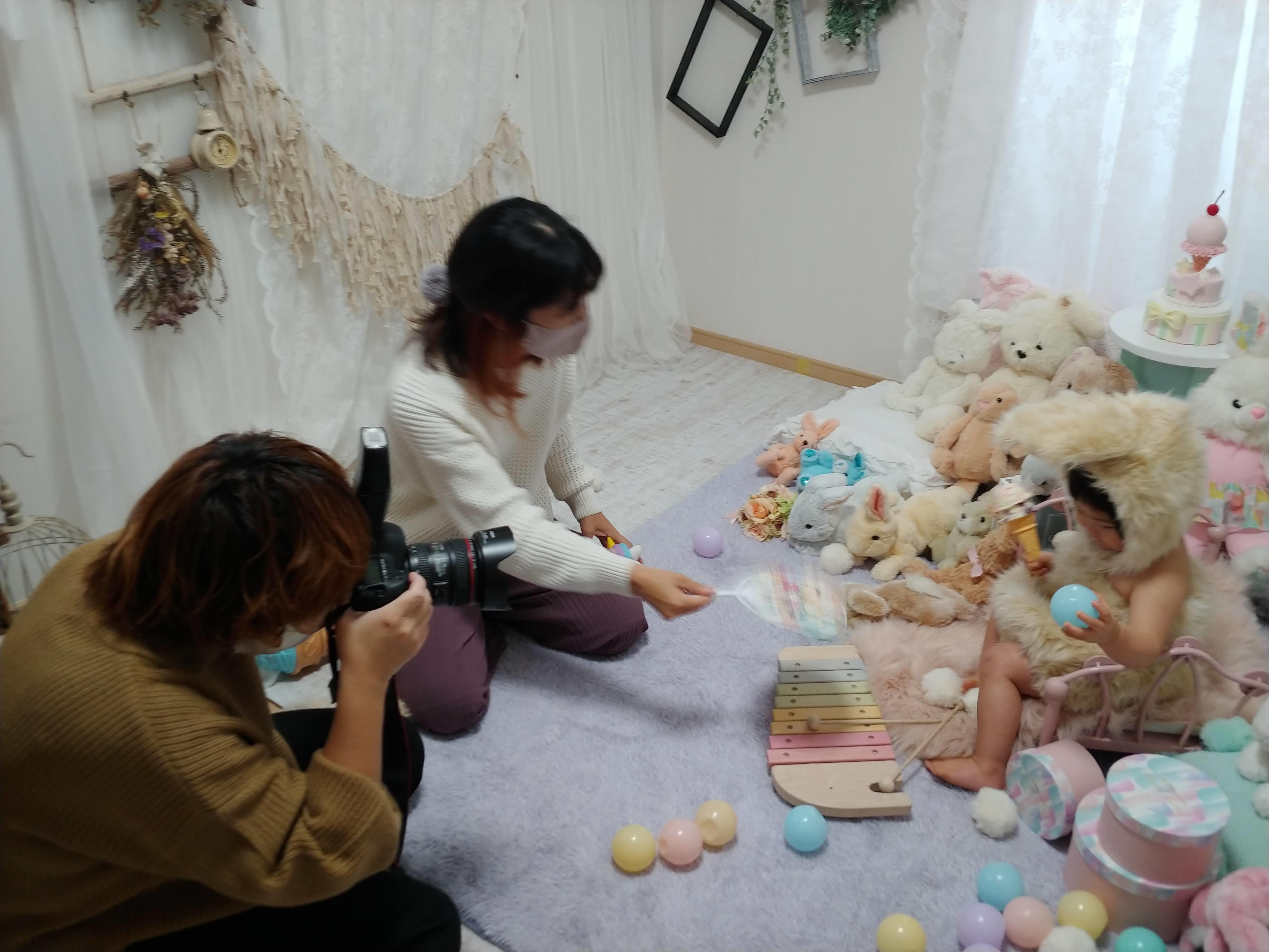 ご自宅(当社建築)のお部屋1室をスタジオとして、1歳のスマッシュケーキ撮影や季節に合わせたイベント撮影を中心に