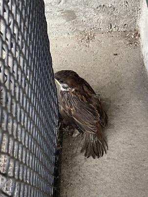 一覧へ戻る先日、会社の玄関わきにある傘立ての後ろに雀の子が隠れていました。