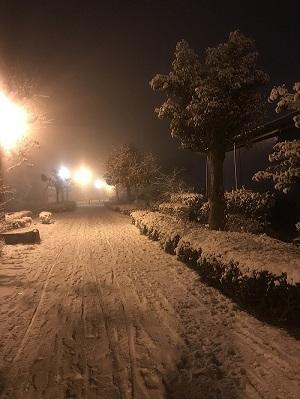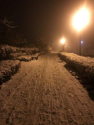 普段、車通勤をしていますが、初雪の降つた夜は電車にて帰宅しました。所々道が凍っていて、何回も転びそうになりながらの帰宅です。ただ、一面は白く色づけされており何とも幻想的な世界は感動致しました。(BYB)