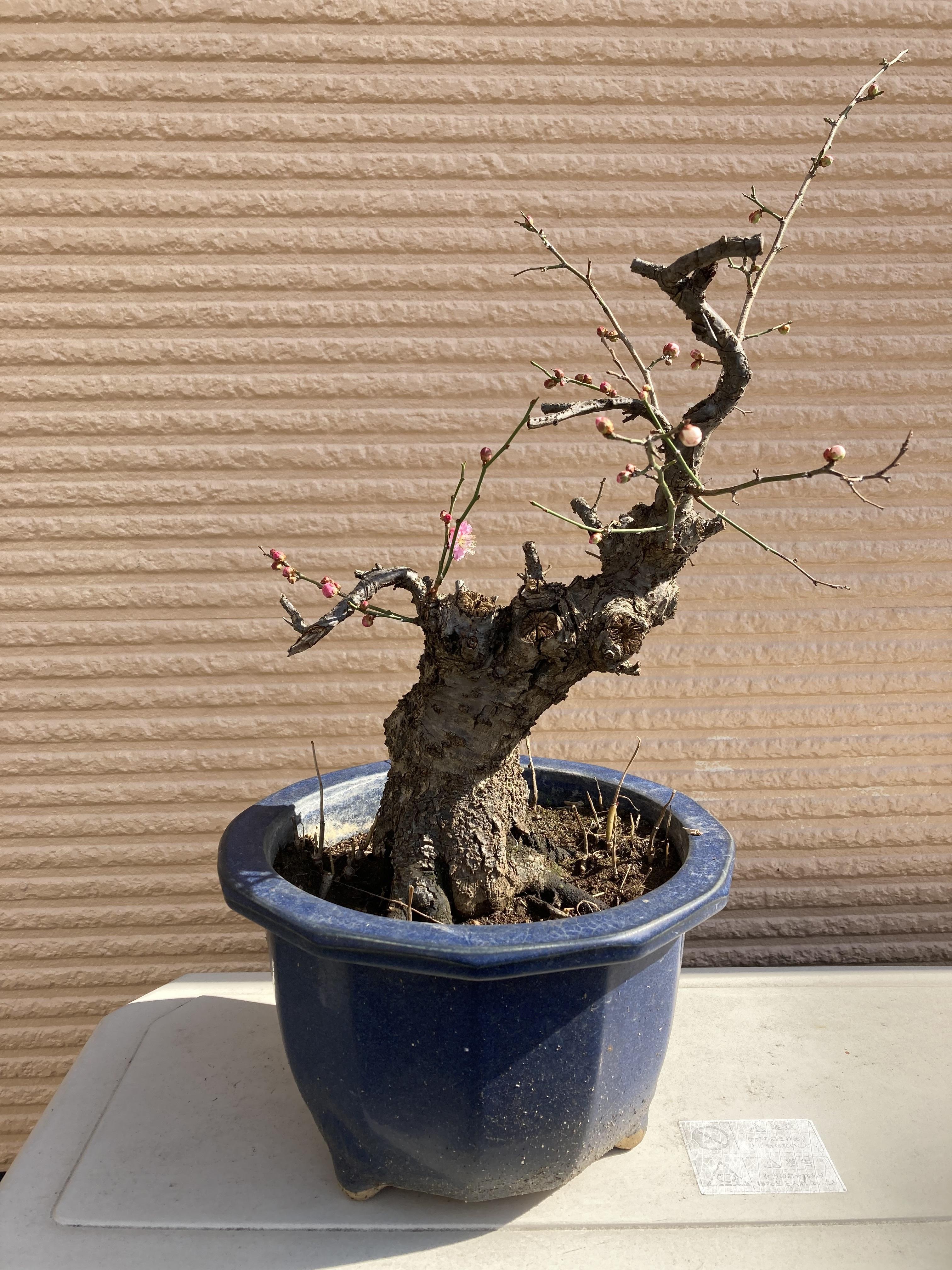お客様の家を建替えした際に頂いた盆栽に梅の花が咲きました。