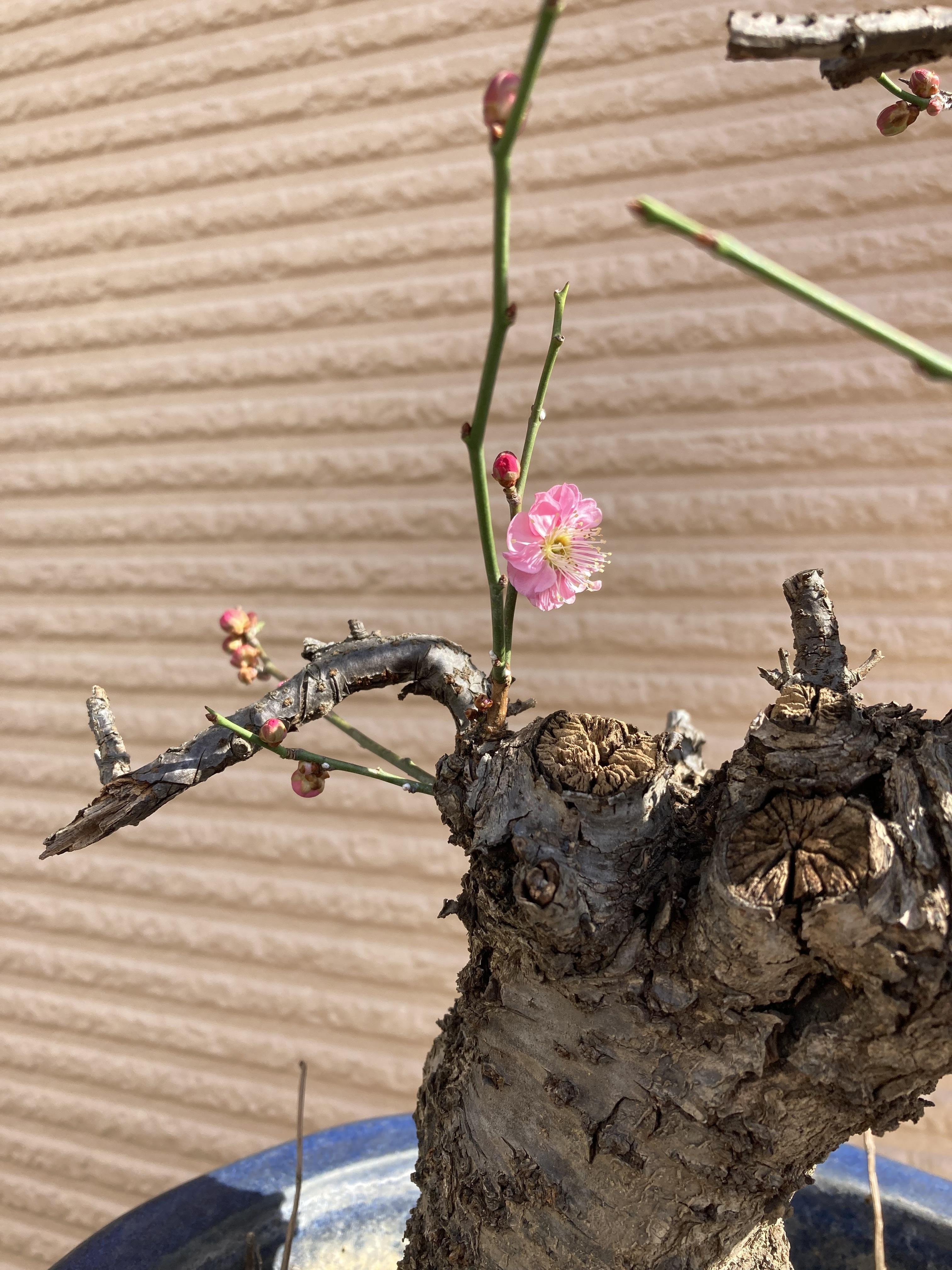 一覧へ戻るお客様の家を建替えした際に頂いた盆栽に梅の花が咲きました。