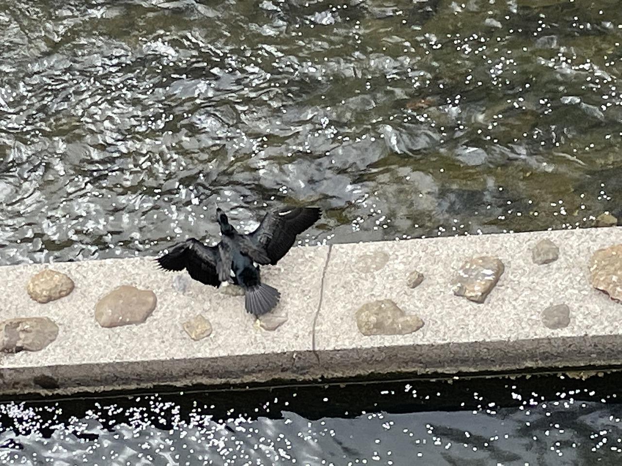 春を感じているように 鵜が羽を広げてました。