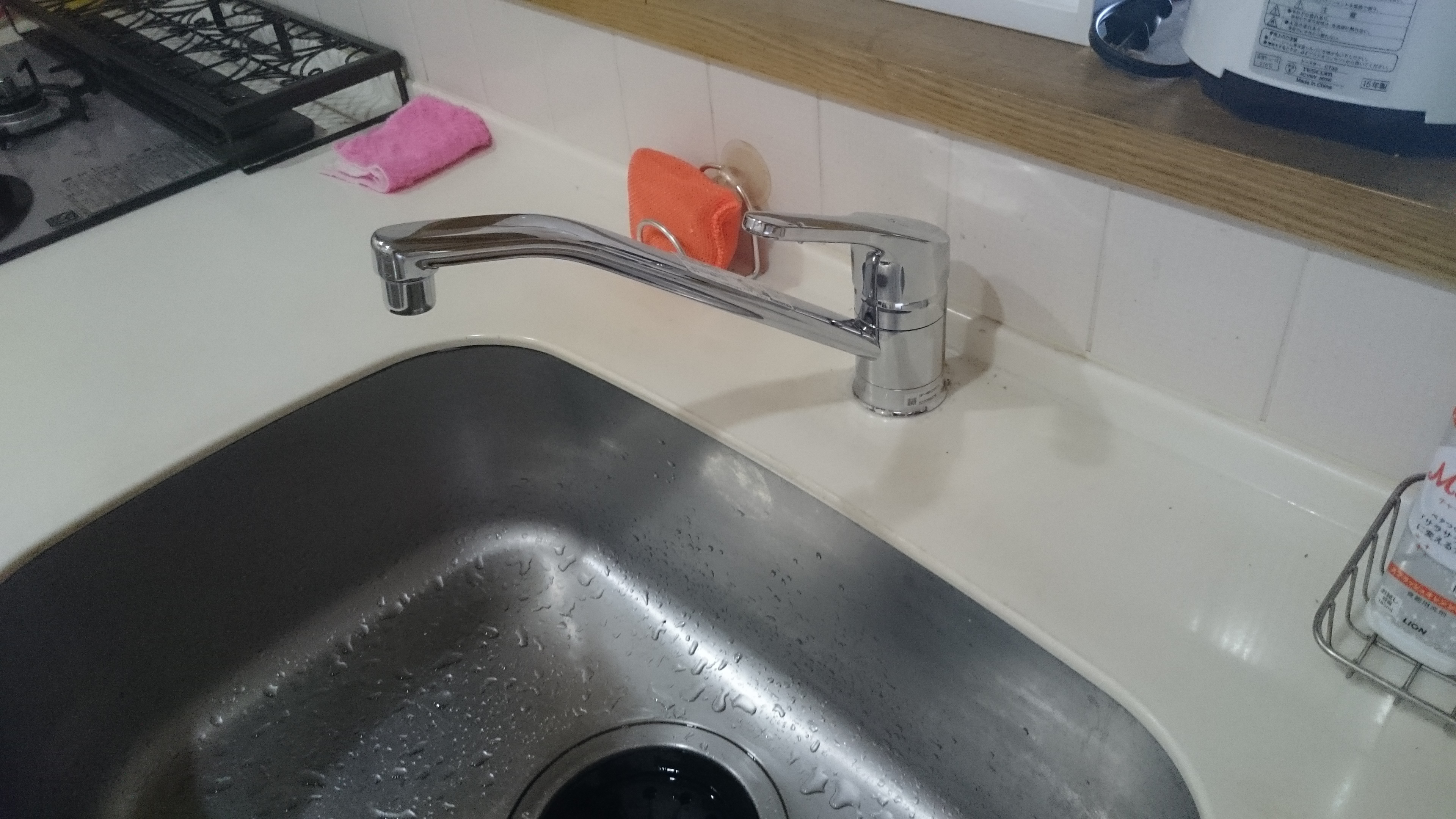 既存キッチン水栓 根元より水が浸透し固定してる部部が腐食して水栓がグラグラするとの事で 下地を補強して新しい水栓を取り付けました。
