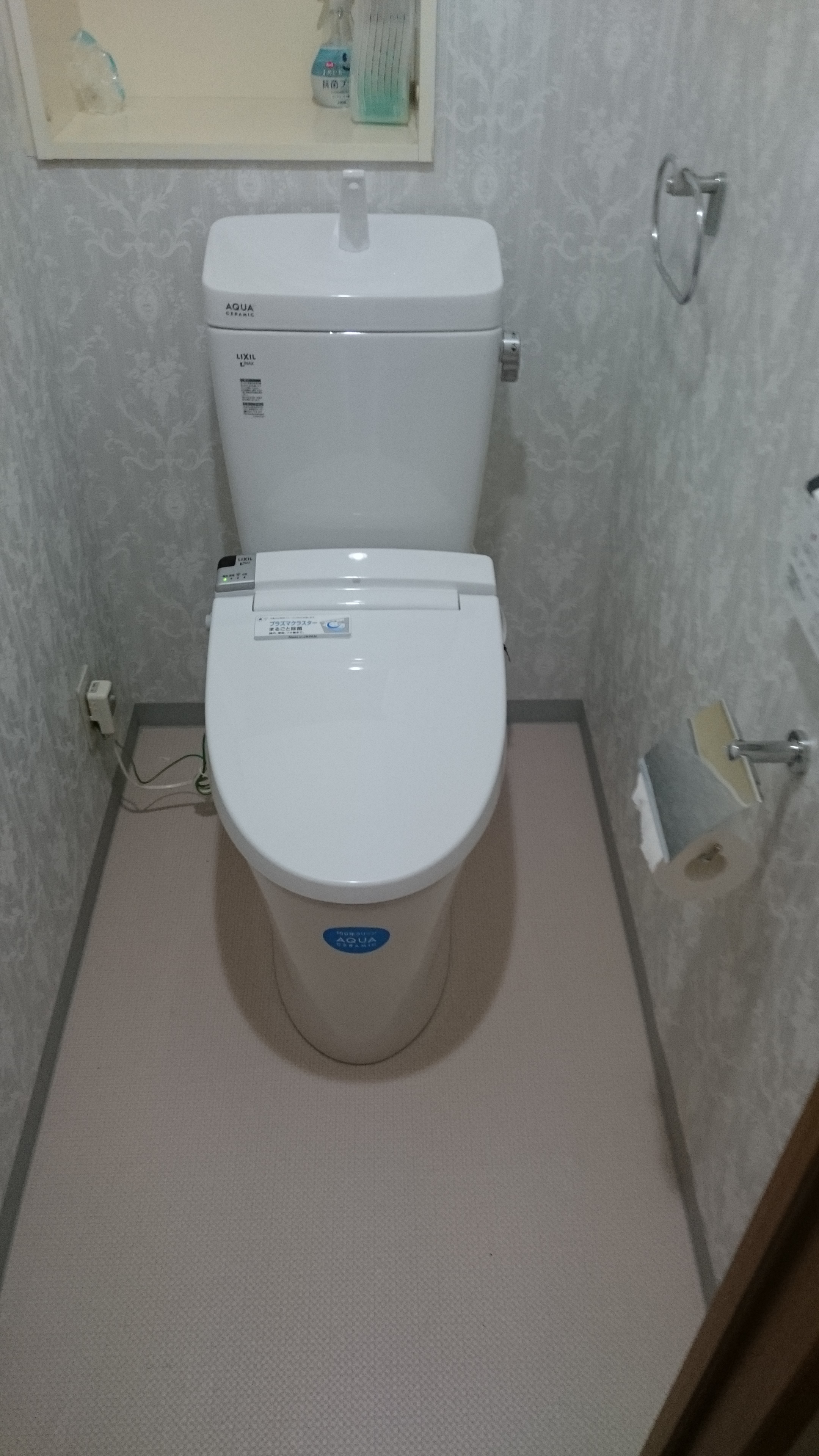 トイレ取替工事と同時に 内装(天井・壁・床)も新しく貼り替えました。