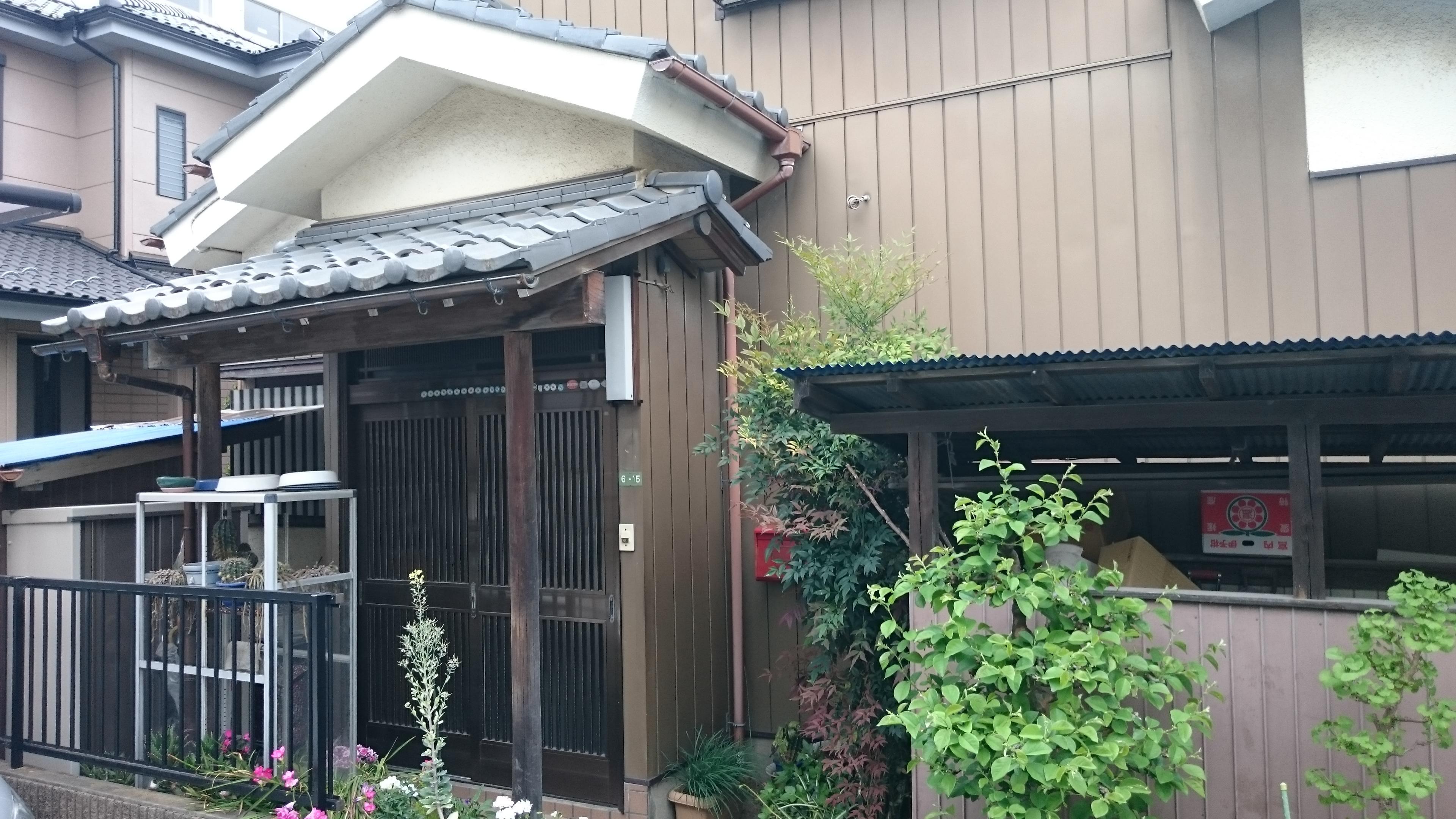 既存玄関引戸のデザイン・色に似た、リシェント11型(千本格子)ブロンズ艶消し に取替しました。