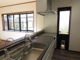 熱とキズに強いLIXILセラミックトップを採用しています。お料理を振る舞うのが大好きな奥様のためにご主人が選びました。勝手口には、猫ちゃんが出入りするための外国製のマグネット式開閉型ペットドアを施工しました。