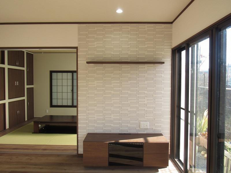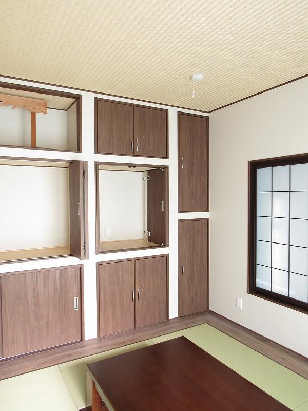 週末には近くに住むお子様家族が集い、掘りごたつを囲みます。奥のお仏壇を収める扉(中央)には、特殊な金具を取付け扉を奥にすっきり収めることができます。