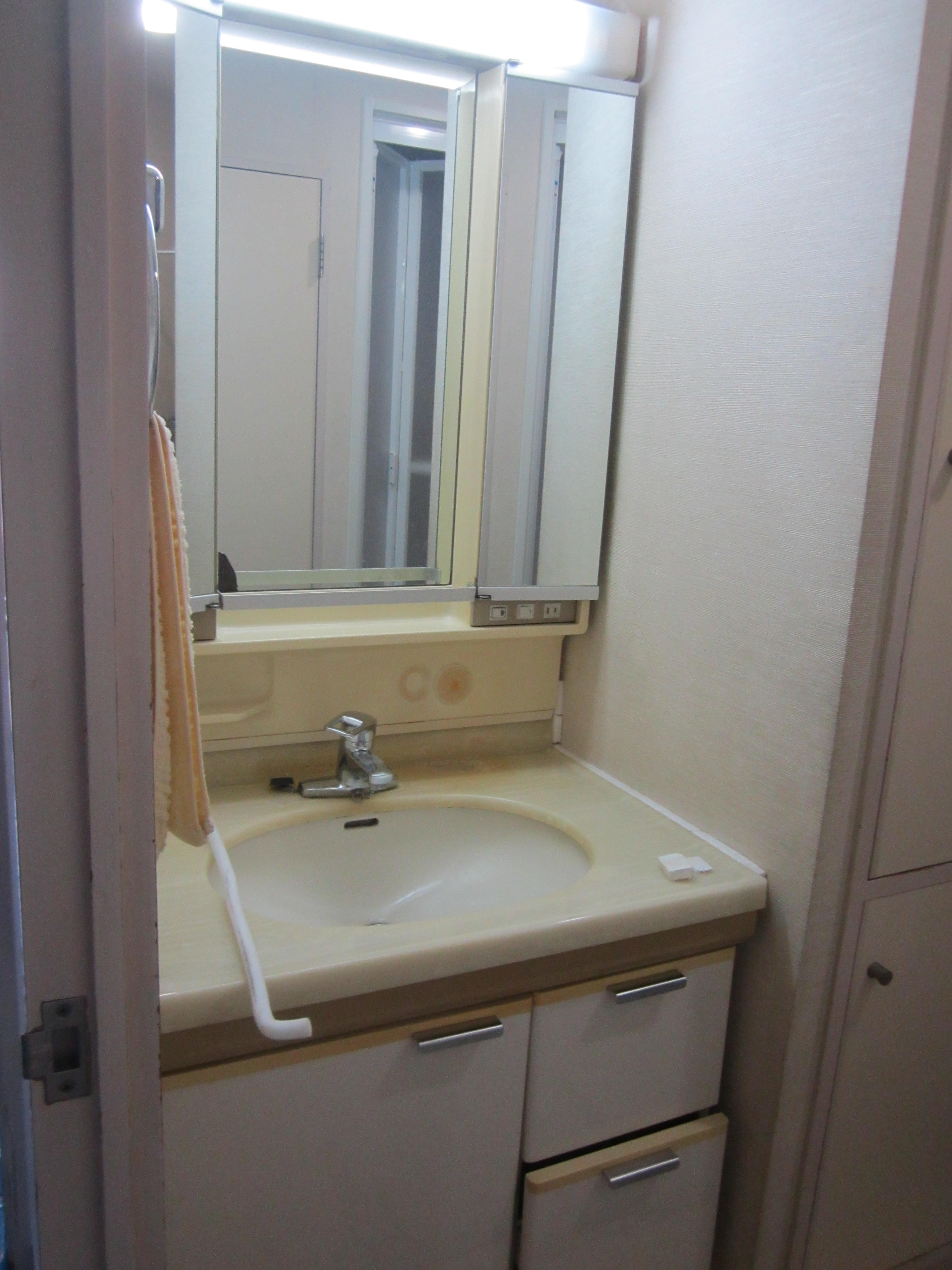 洗面台の老朽化が気になっていたお客様。この度交換工事を行うことになりました。新しく綺麗な洗面台を設置しただけで、周囲の明るさが違います。おうちの中全体も明るくなったように感じます。