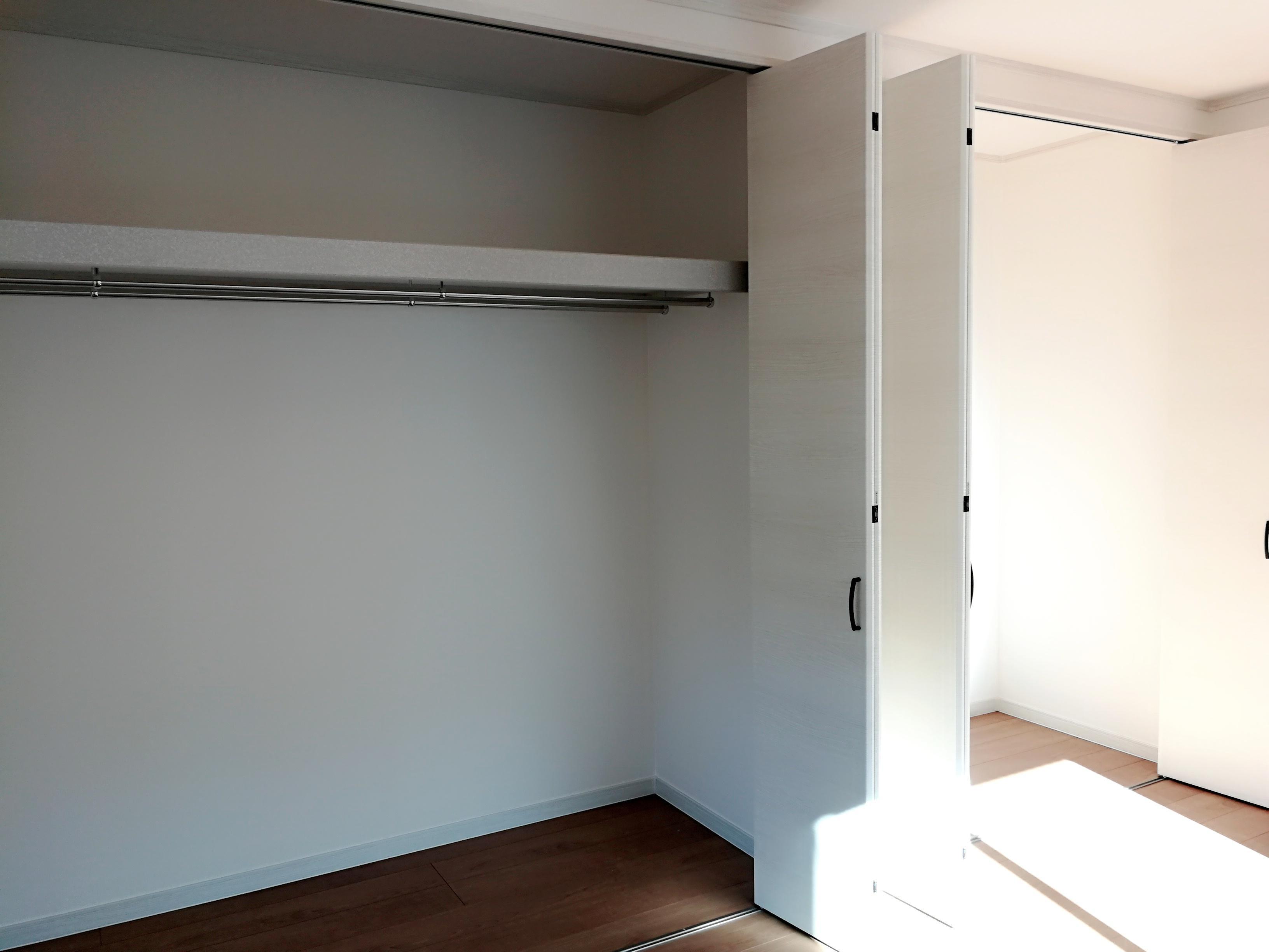 大きなクローゼットを寝室に。これで収納には困りません。白を基調とした空間にさしこむ光がとてもキレイです。