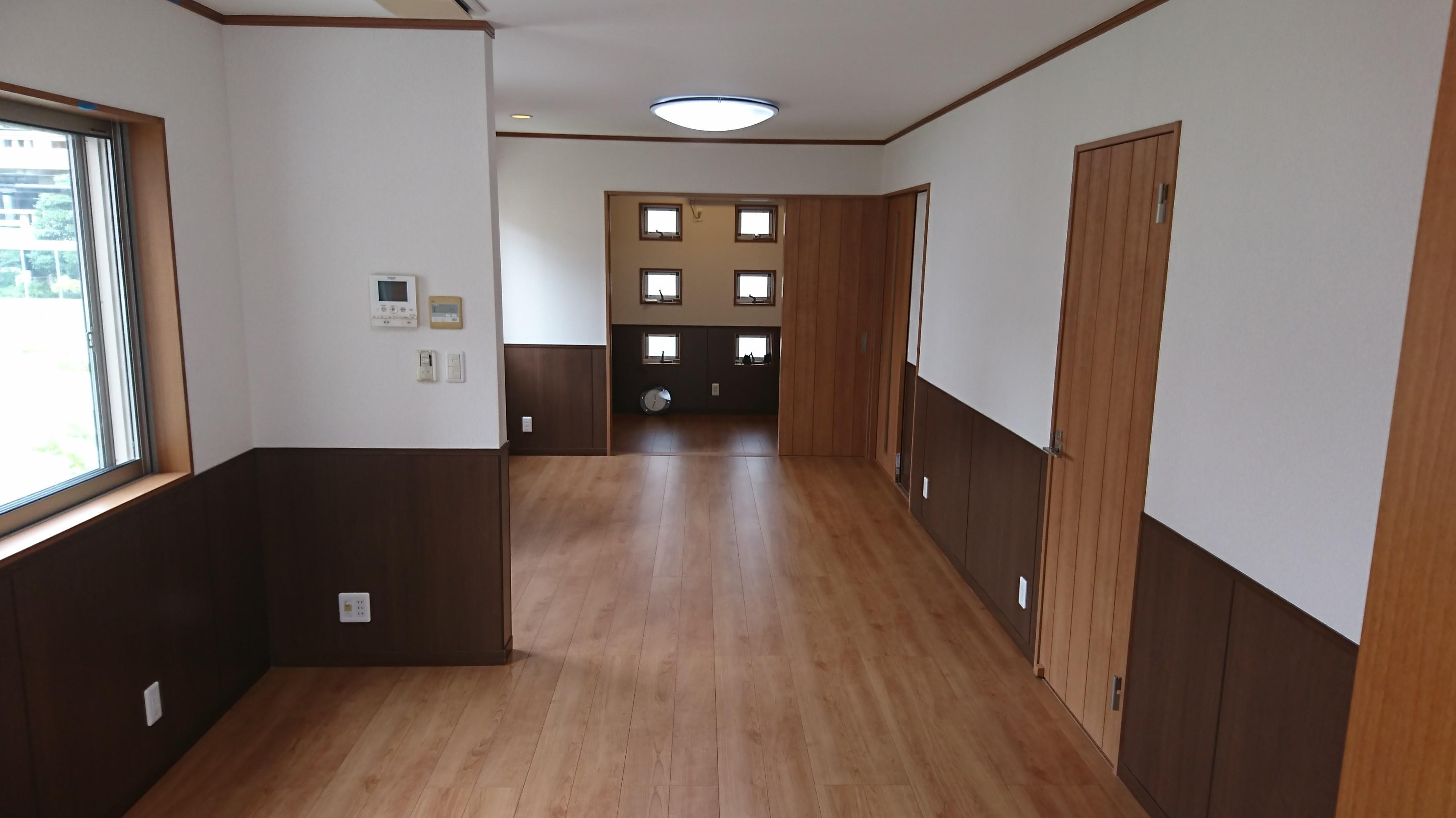 元気な動物たちによって部屋の床や壁、ドアが痛んでしまったため、こちらのお部屋を中心に水廻りのリフォームのお話をいただきました。