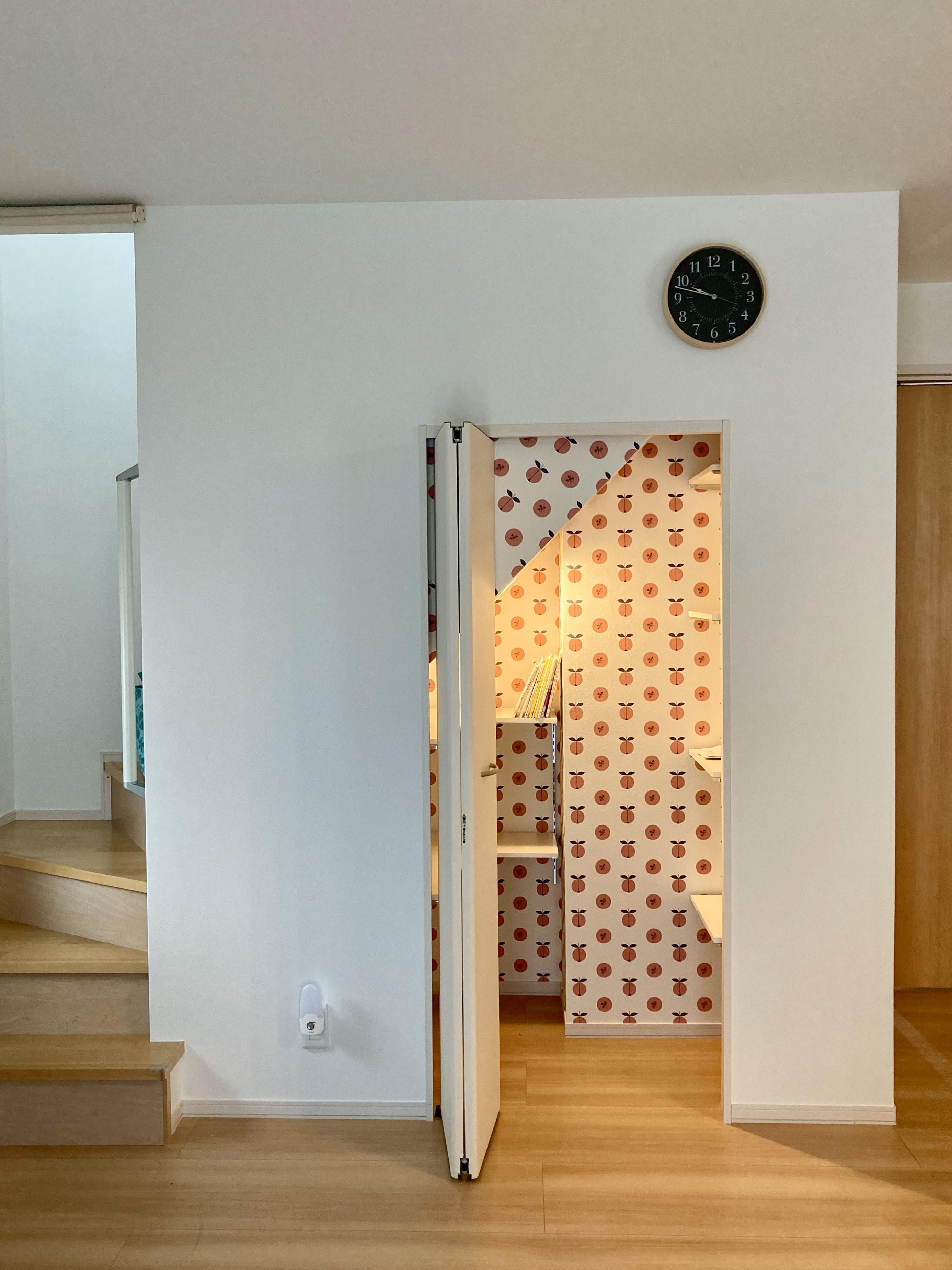階段下の狭いデットスペースは、お子様にとっては誰にも邪魔されないお気に入りの場所に。親御さんもリビングで落ち着いて、くつろいでいただけると思います。