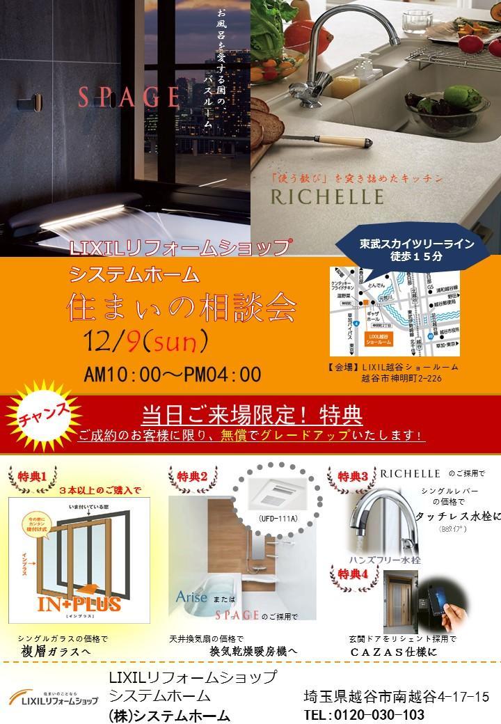 来月12月9日に越谷ショールームで『住まいの相談会』を開催いたします。