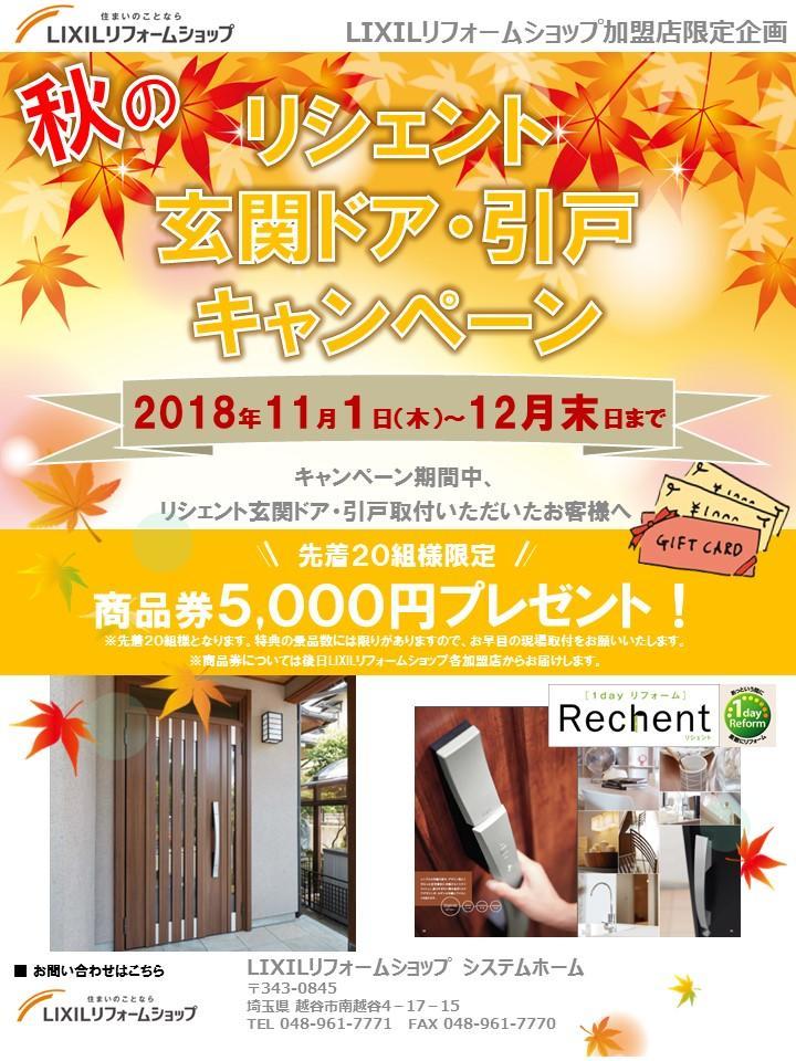 ②LIXIL『秋のリシェント 玄関ドア・引戸キャンペーン』開催中!