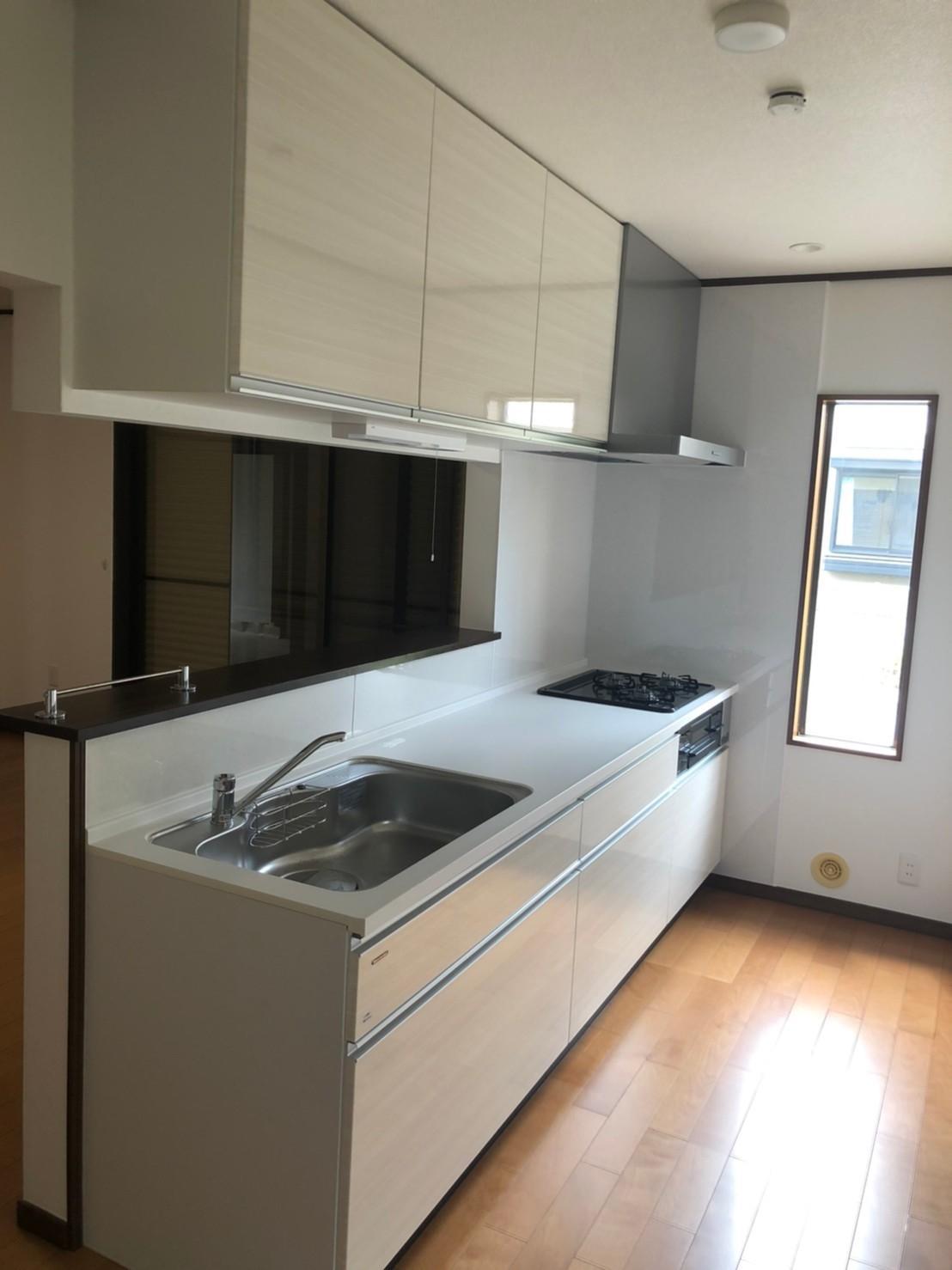 対面キッチンなのでリビングからの見た目をすっきりさせる収納力UPのキッチン・お手入れ楽々レンジフードへリフォームしました!